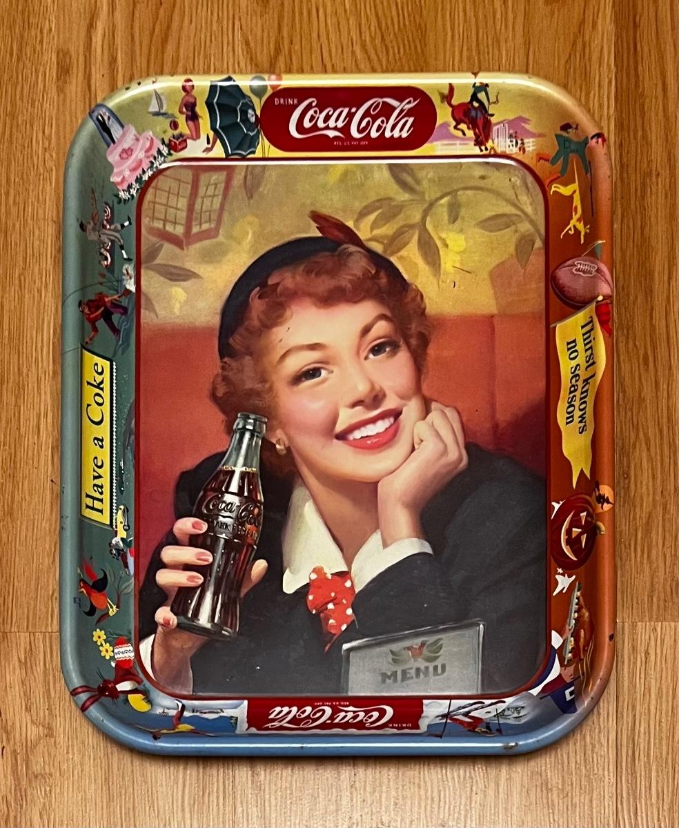 Vintage Coke Coca Cola Tray 1950’s Thirst Knows No Season Menu Soda Girl