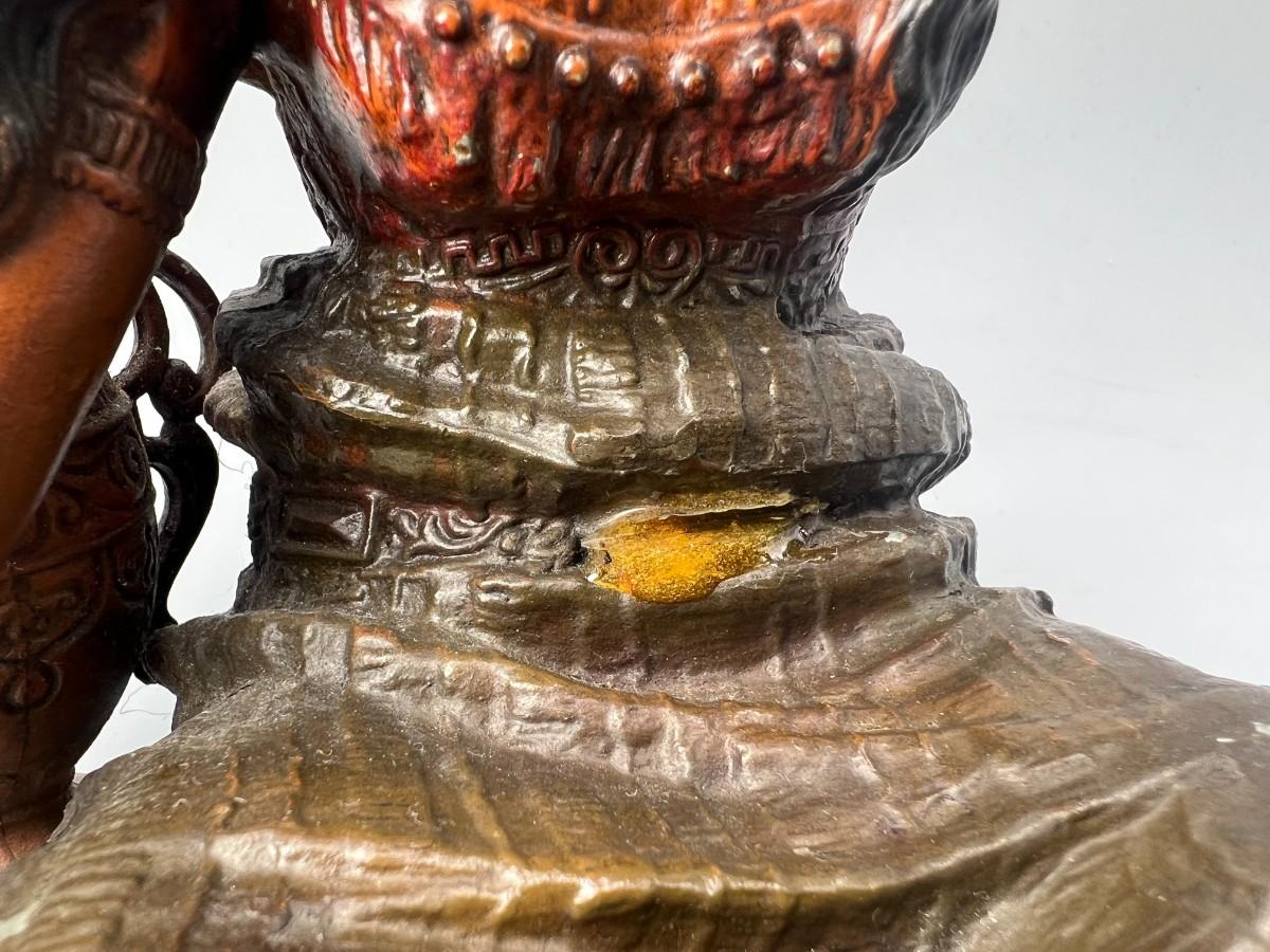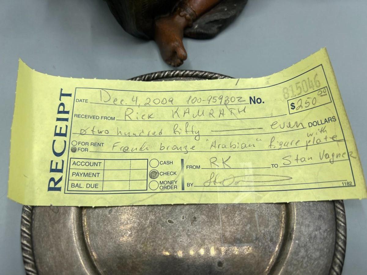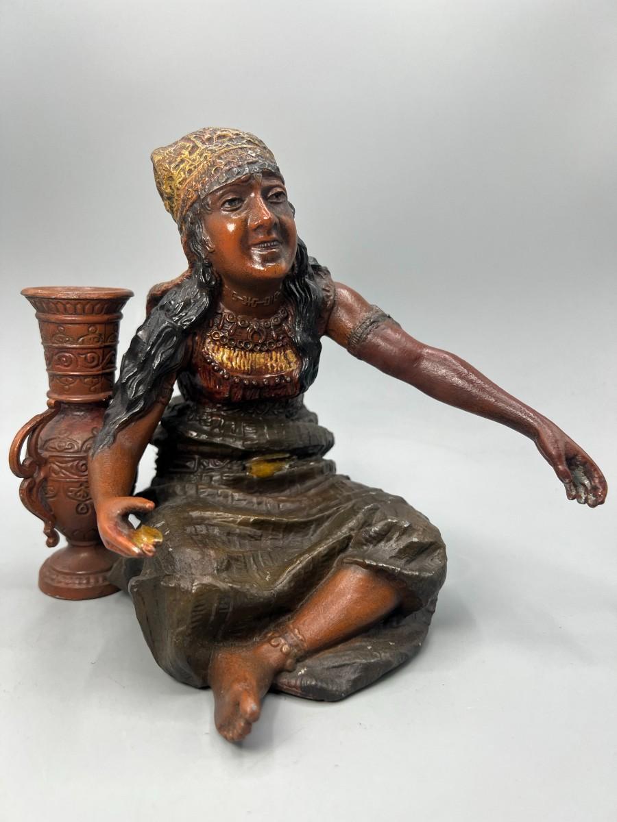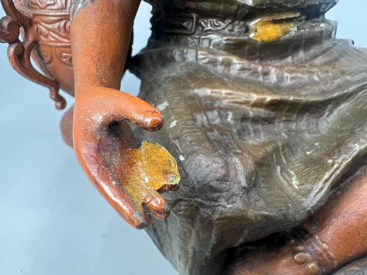 Vintage Cold Painted Arabian Woman Metalware Bronze Art Deco Spelter Statue with Saucer Plate
