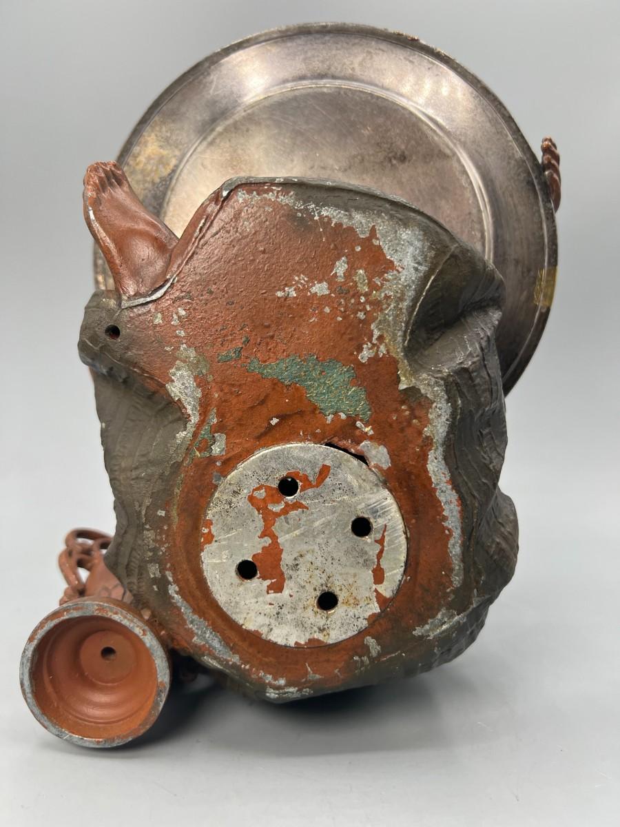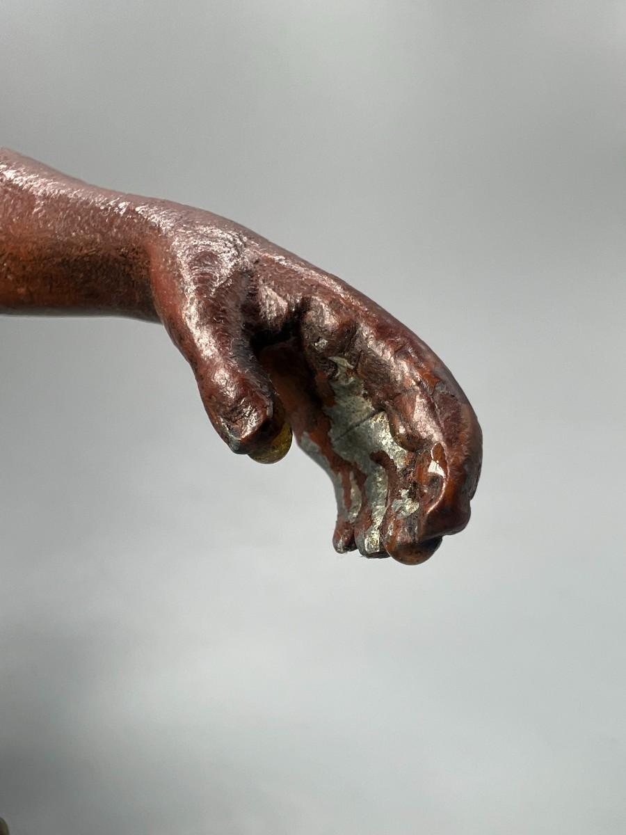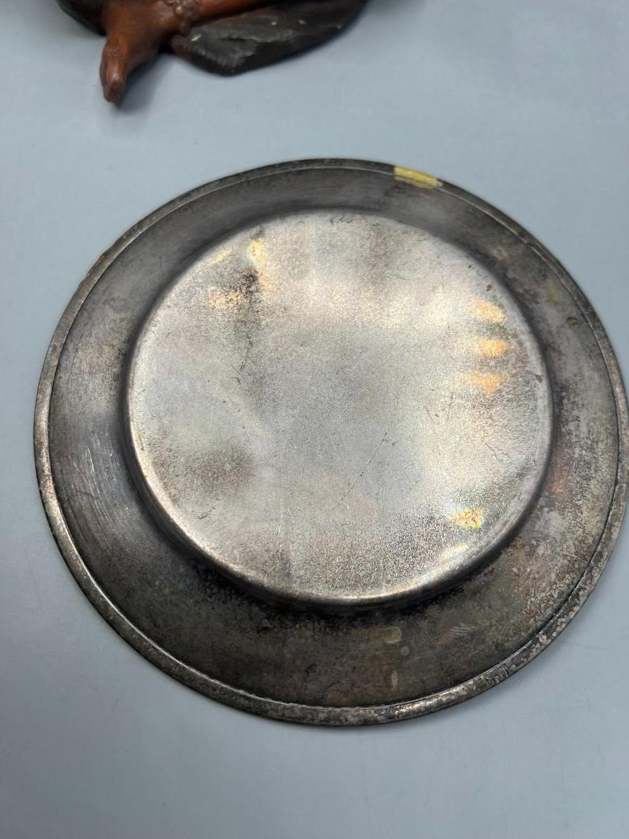 There are some signs of vintage wear all over the statue, but there is no significant damage and is in overall good collectible or displayable condition. Check pictures for more details and for sizing. There is residue of glue on the hands and the plate.