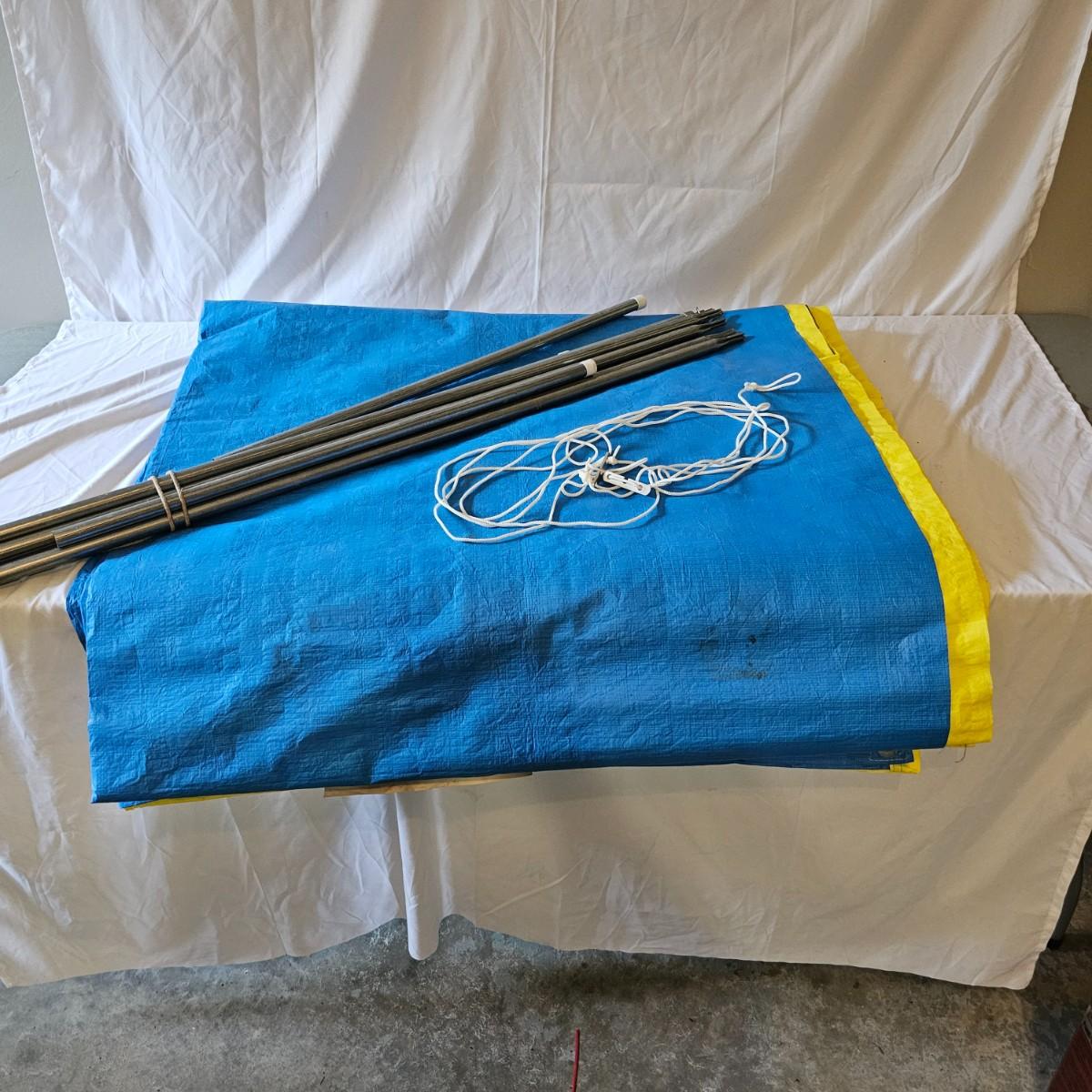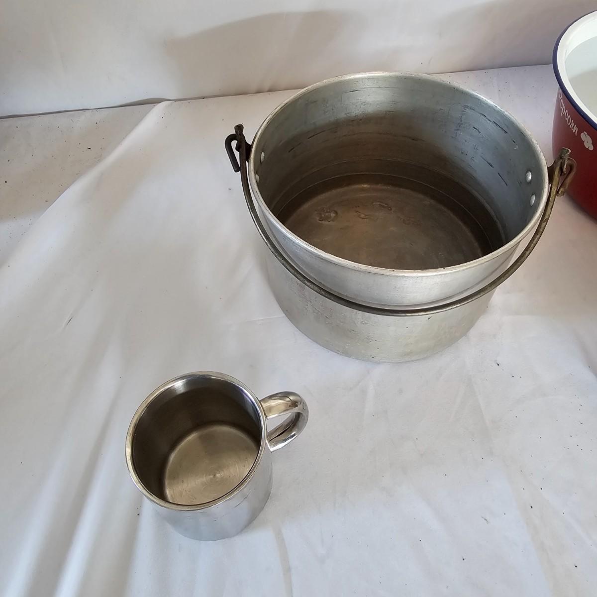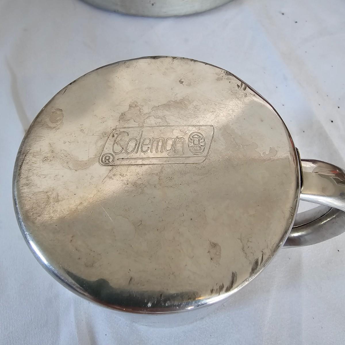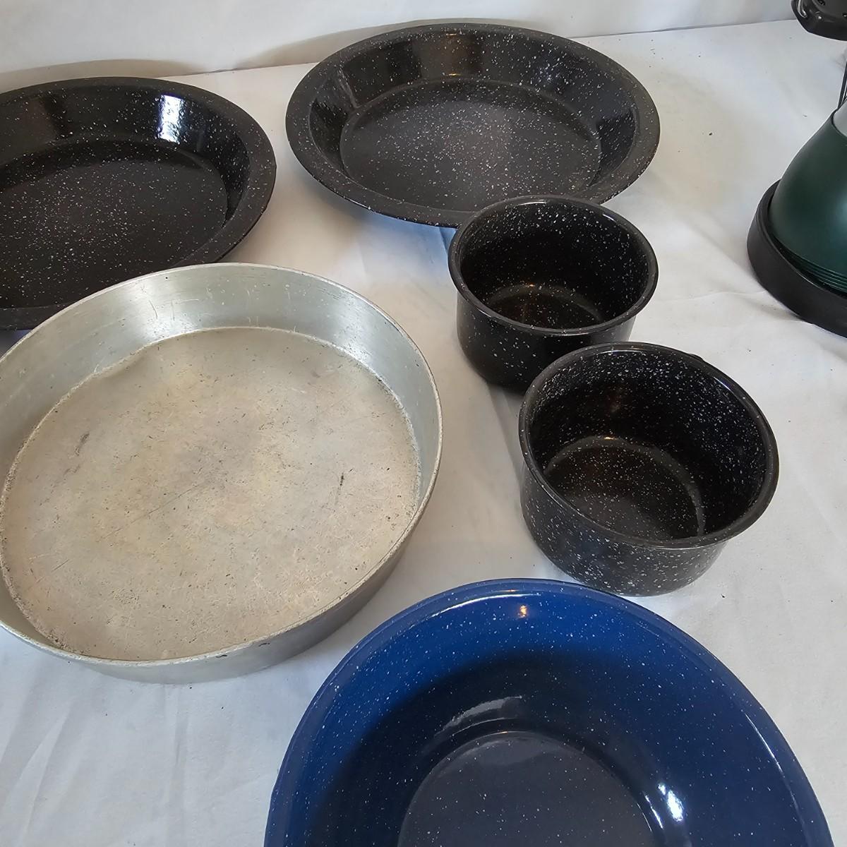 Stove, lantern, oven and more camping items here.stove and lantern run on Coleman fuel, a part can is included. Also includes a battery operated lantern with a DC adapter. Several metal granite wear plates and cups. One stainless Coleman cup. A Coleman camp oven for use on a stove or over a fire. One coffee percolater. One canopy tarp with pokes and ropes, measures 12' x 12' and 8' high. Stove measures 18" x 12" x 15"H. Lantern is 6"D x 19"H. No items have been tested. See photos for details. Local pickup only.
