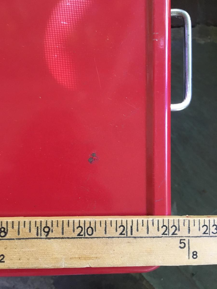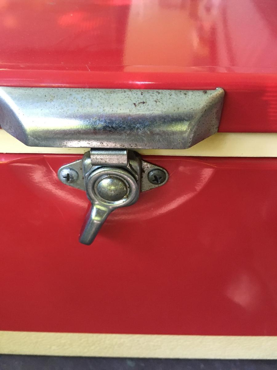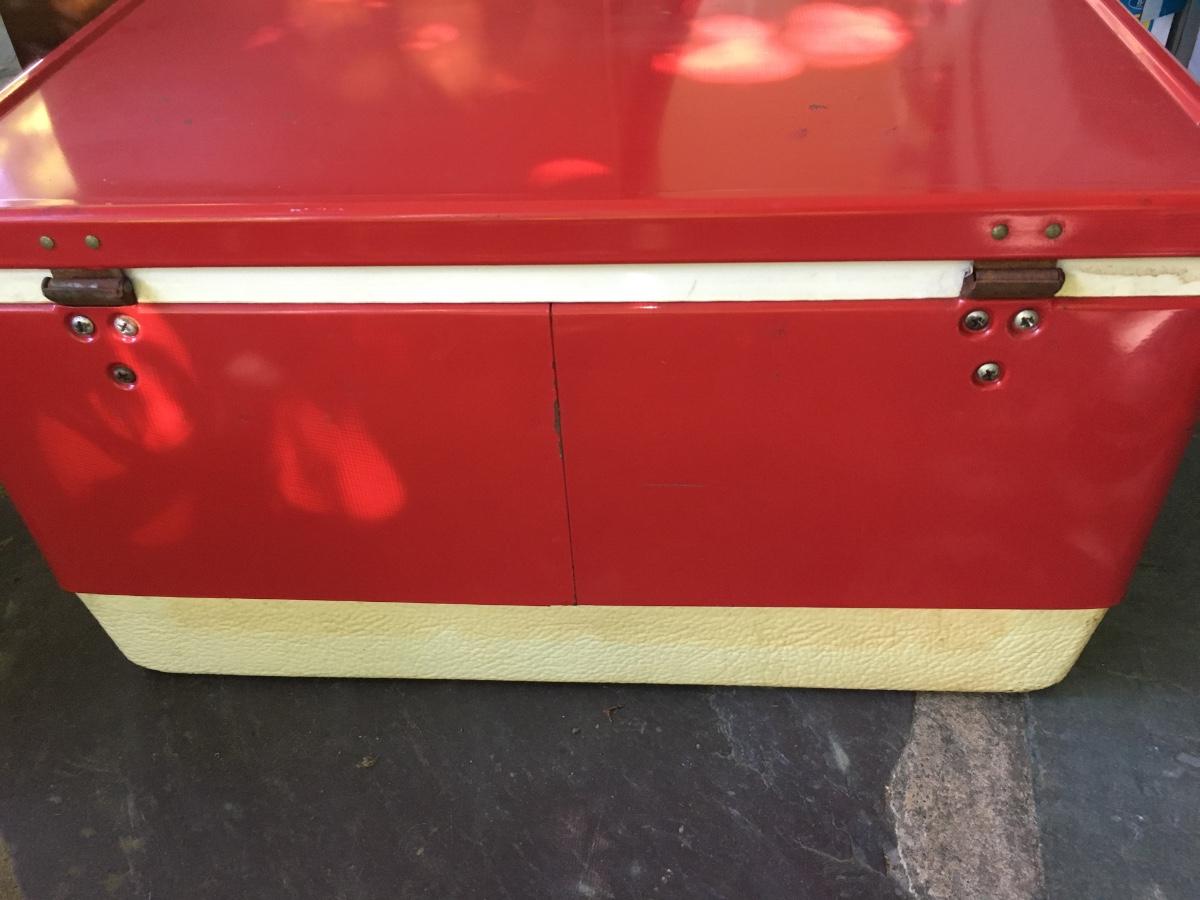 Vintage cooler. . Shows some tiny rust spots on top as noted in picture but in overall good condition. Removable inside tray. If this cooler could only talk about all the good times it’s seen“🦆.