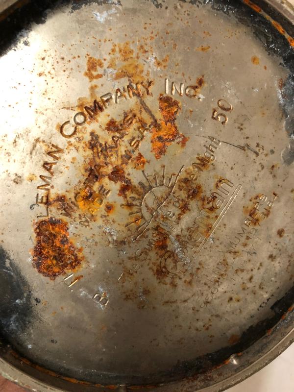 Offered as found for restoration here is a vintage 1950 Coleman fuel lantern..Model 220D...