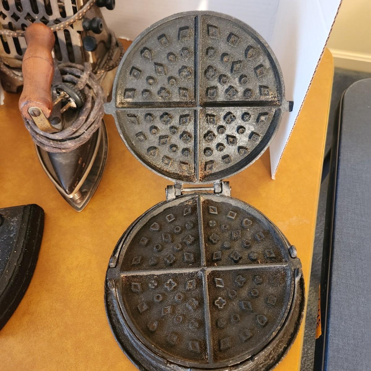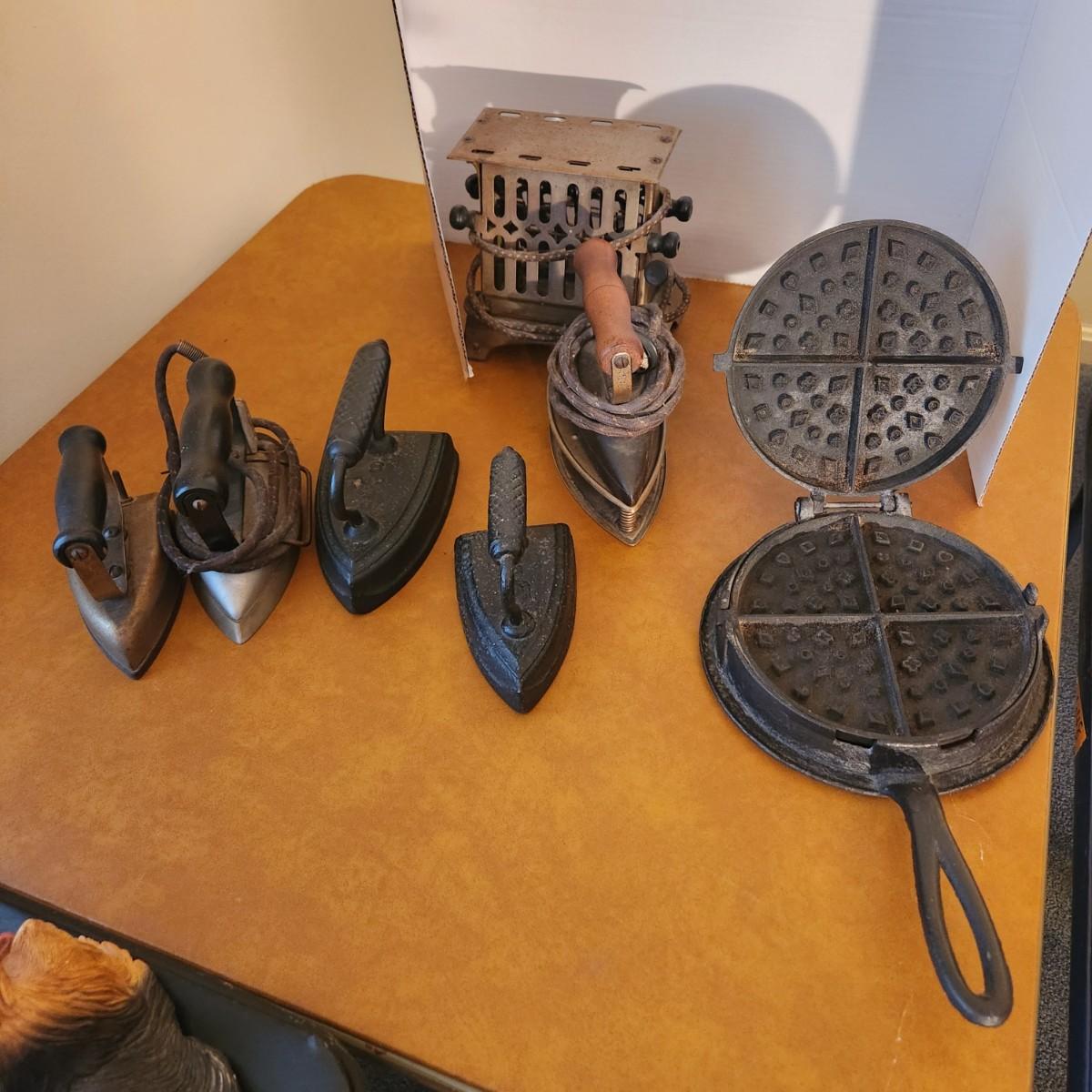 Vintage Collectable Lot, Irons, Cast Waffle Maker, Toaster