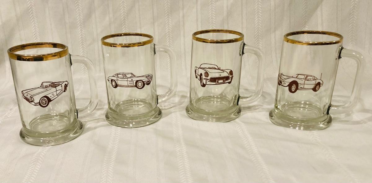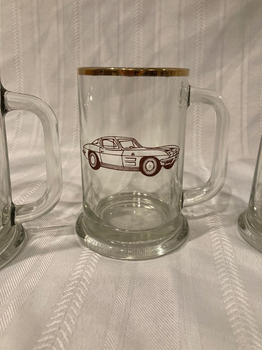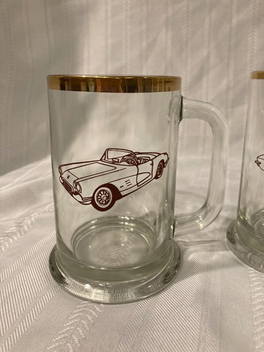 COLLECTIBLE CORVETTE TANKARDS WITH GOLD RIM