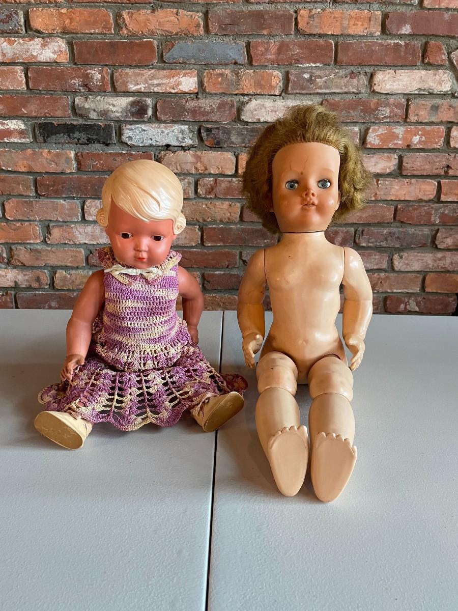 Vintage dolls. Tallest: 22”. Eyes close when laying down.