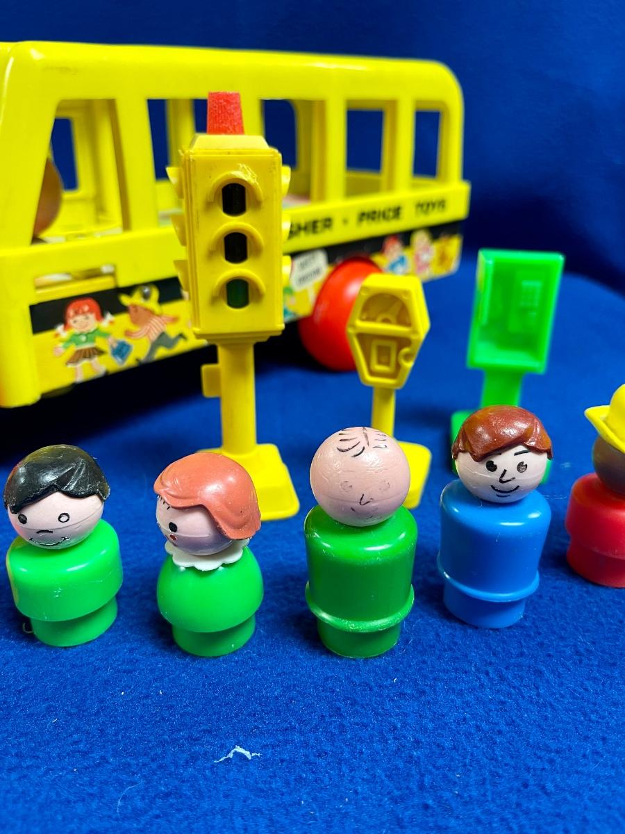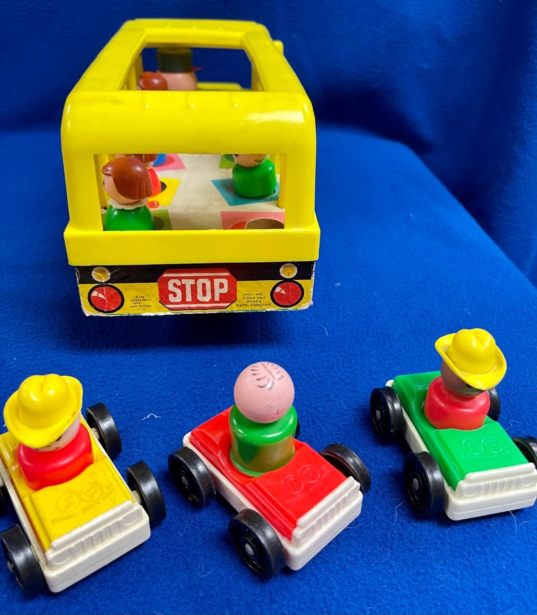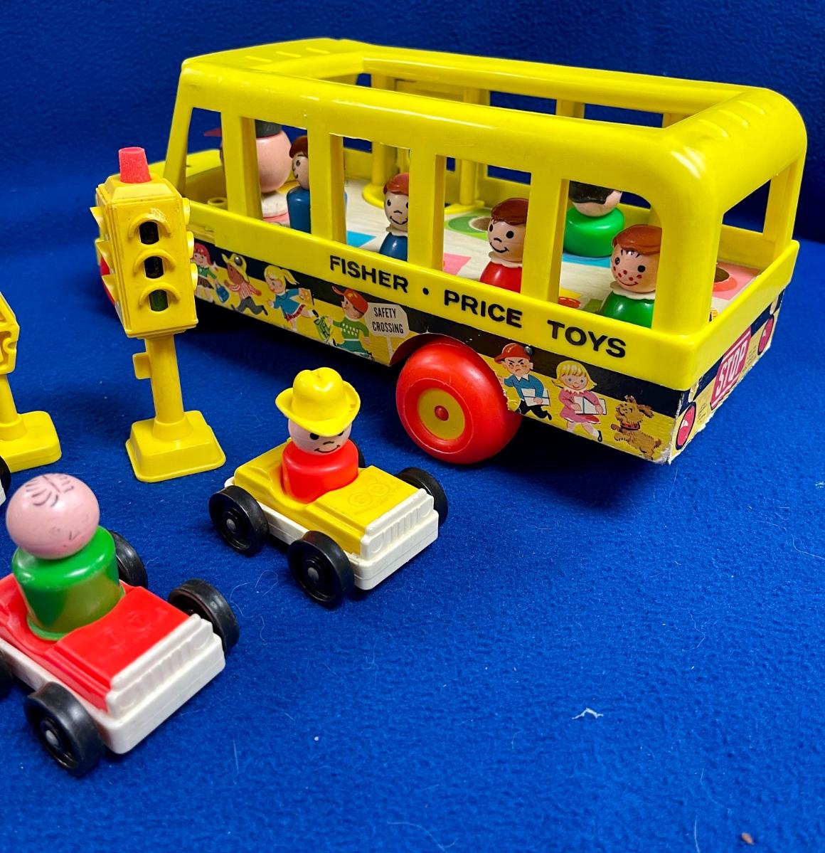 Vintage Collectible Fisher Price Little People School Bus, Cars, Traffic Lights & More