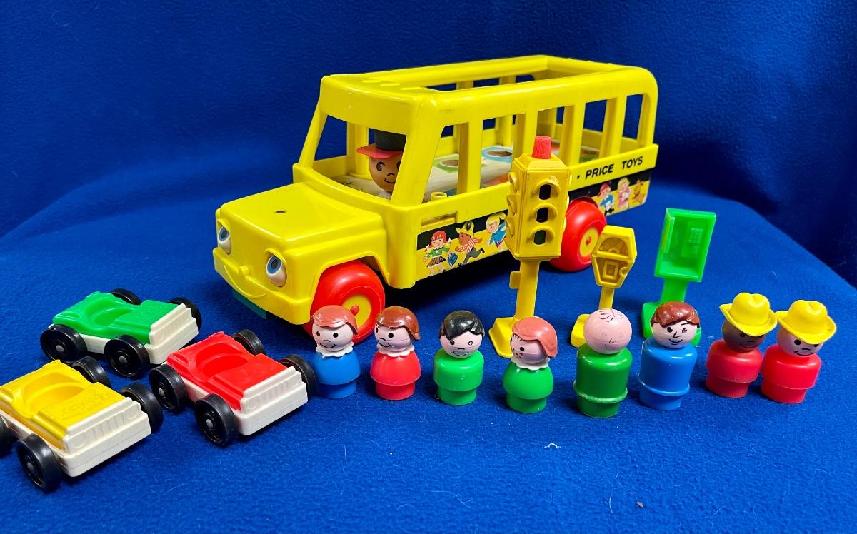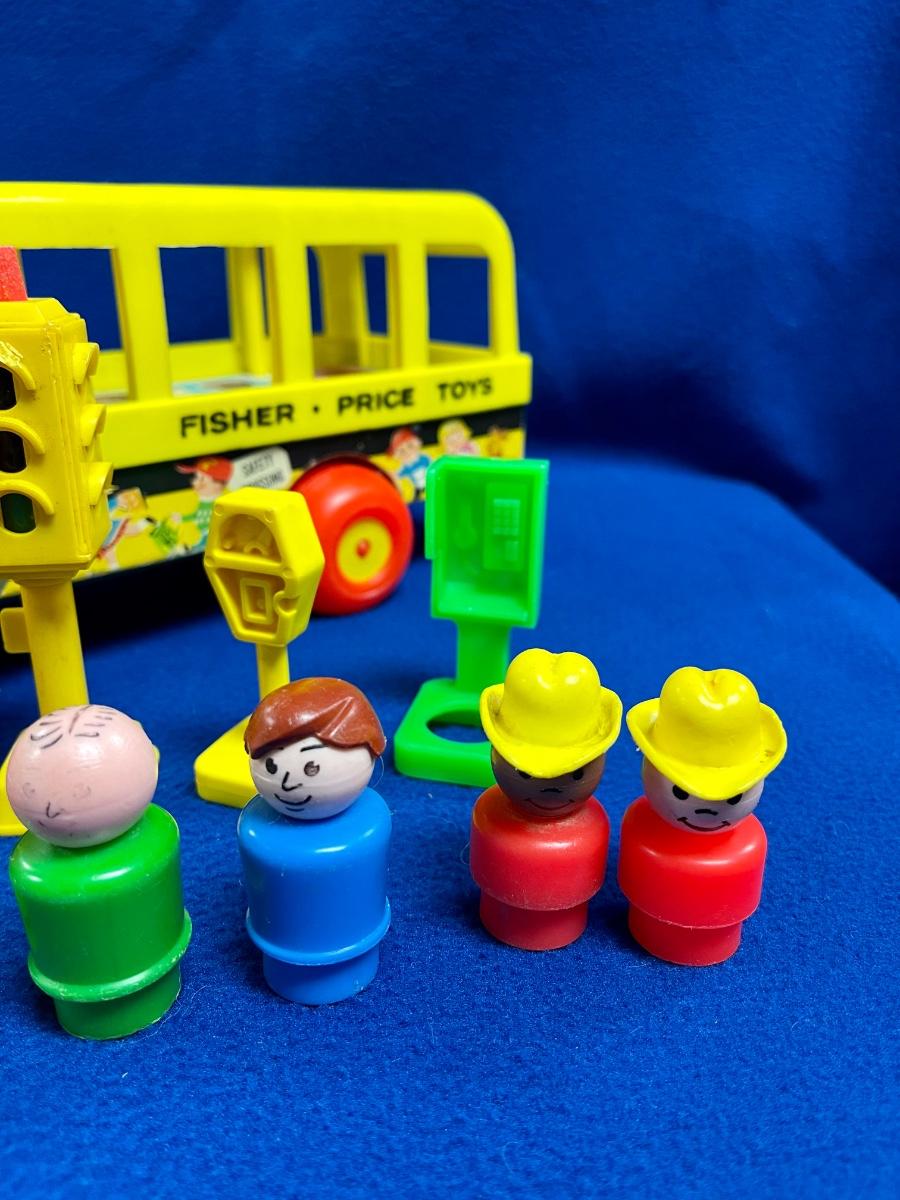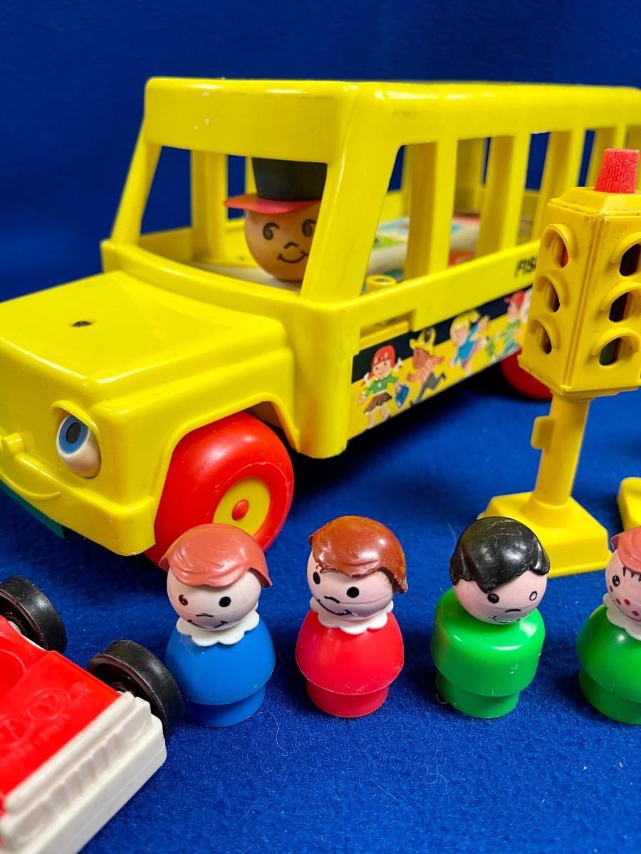 Vintage Collectible Fisher Price Little People School Bus, Cars, Traffic Lights & More