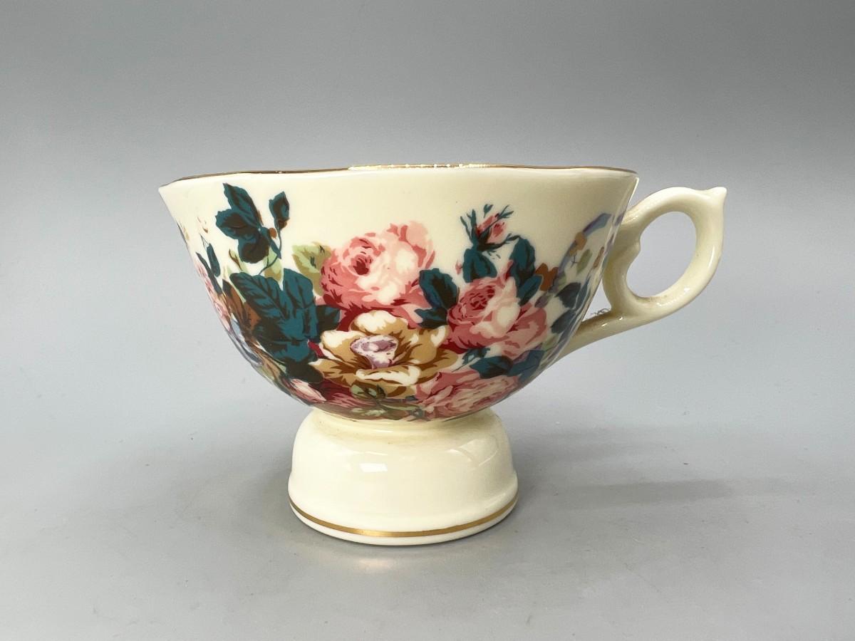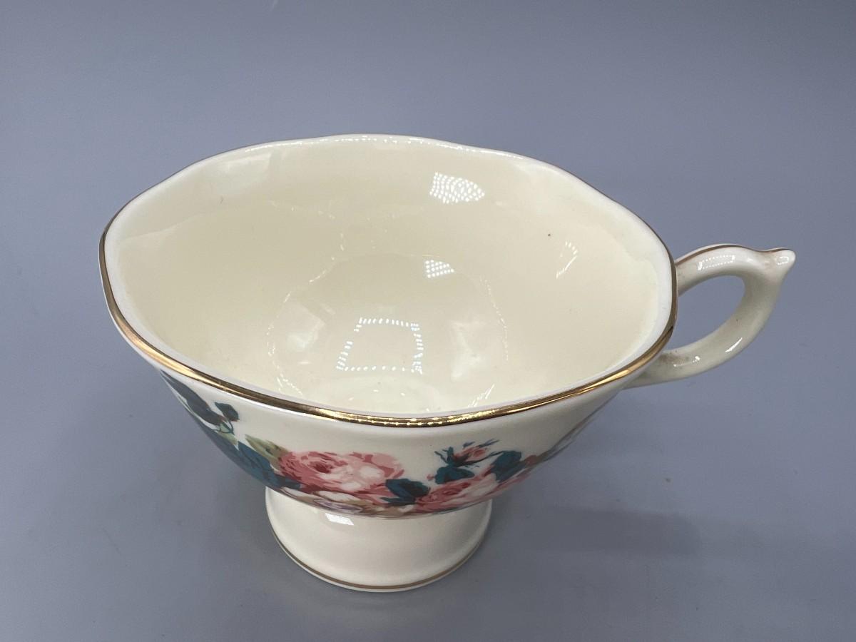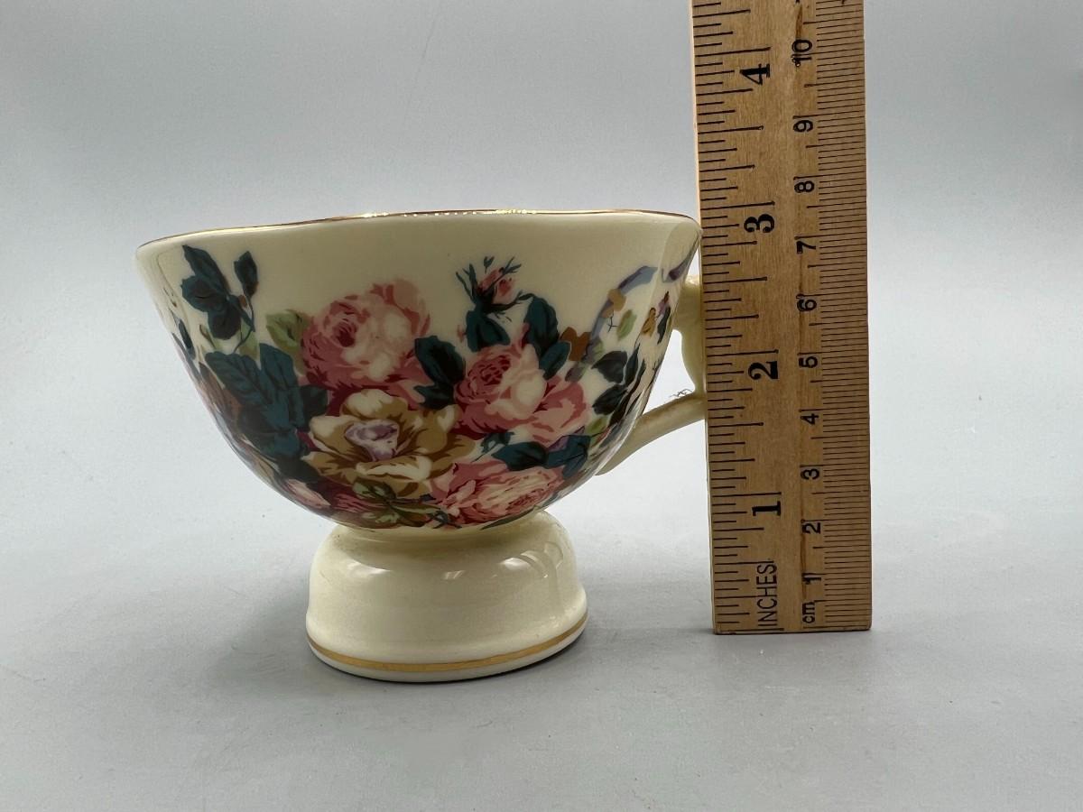 There is no significant cracks or chips to the tea cup and is in overall good collectible or useable condition. Check pictures for more details and for sizing.