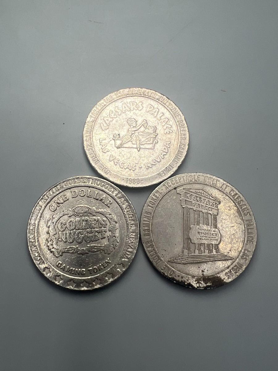 Vintage Collectible Golden Nugget & Caesars Palace Las Vegas One Dollar Gaming Tokens