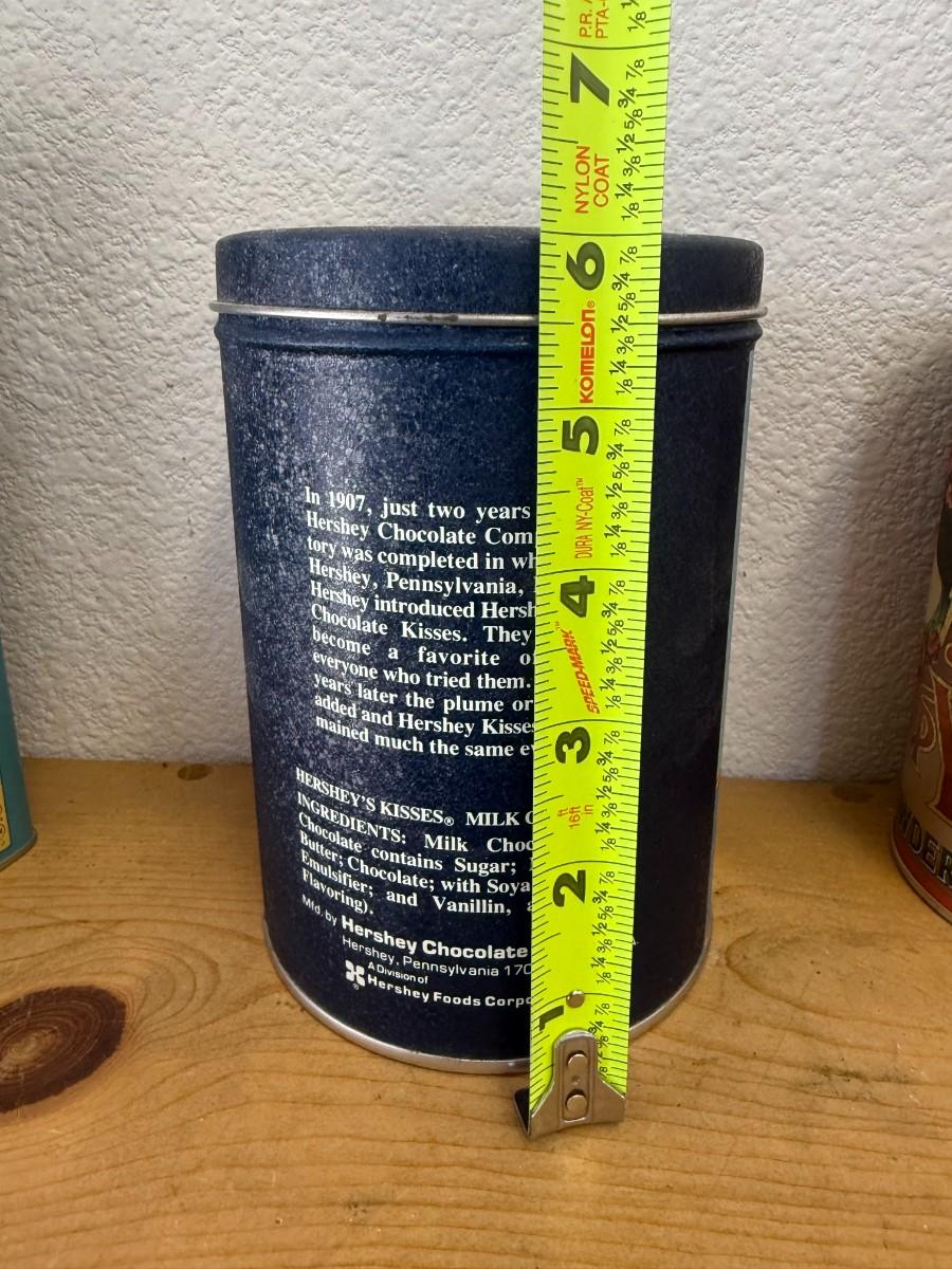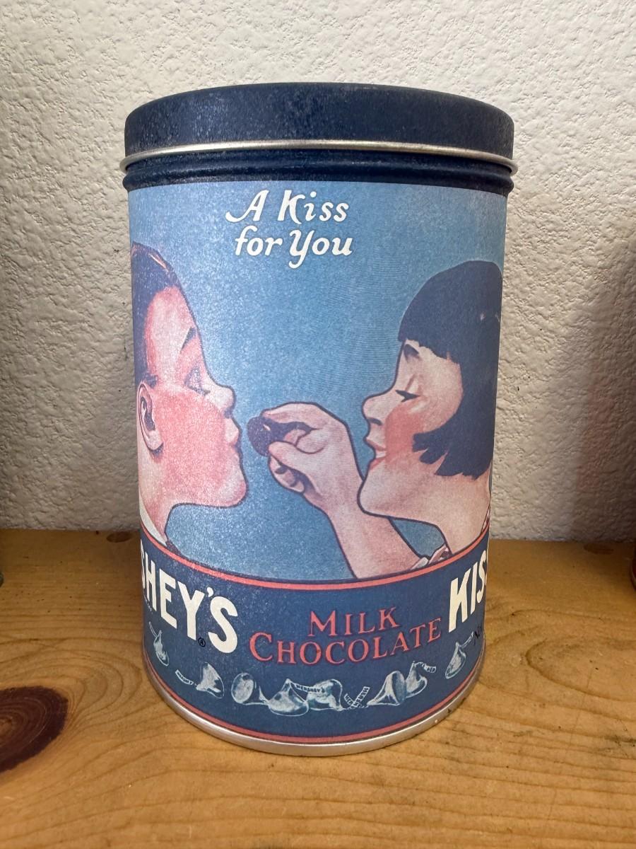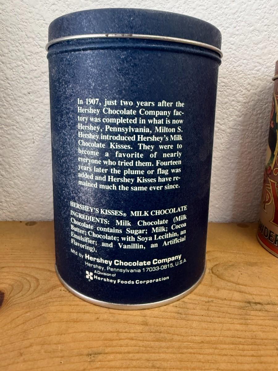 This collectible Hershey's Kisses tin from 1980 is a nostalgic piece that brings sweet memories while serving as a charming storage container.