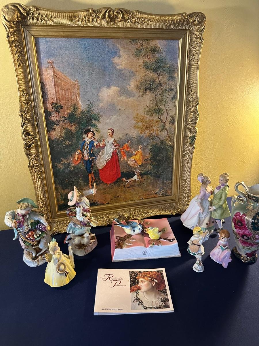 FRAMED ART & FIGURINES AS PICTURED VINTAGE