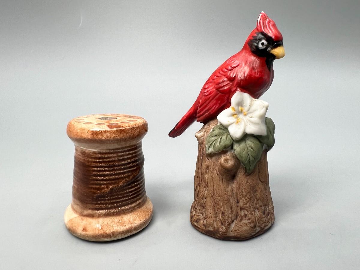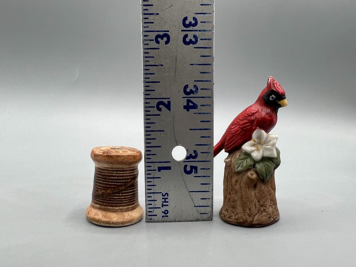 Vintage Collectible Spool & Red Robin Ceramic Sewing Crafting Thimbles