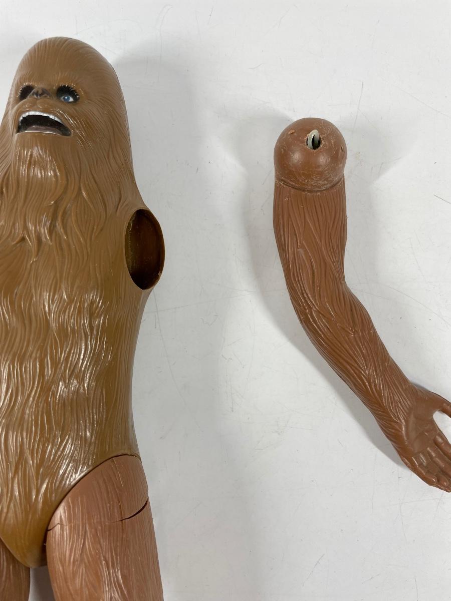 Vintage Collectible Star Wars Chewbacca Figurine. Has damage, one leg is broken. Arms are intact but no longer attached. Made in 1968 in Hong Kong.