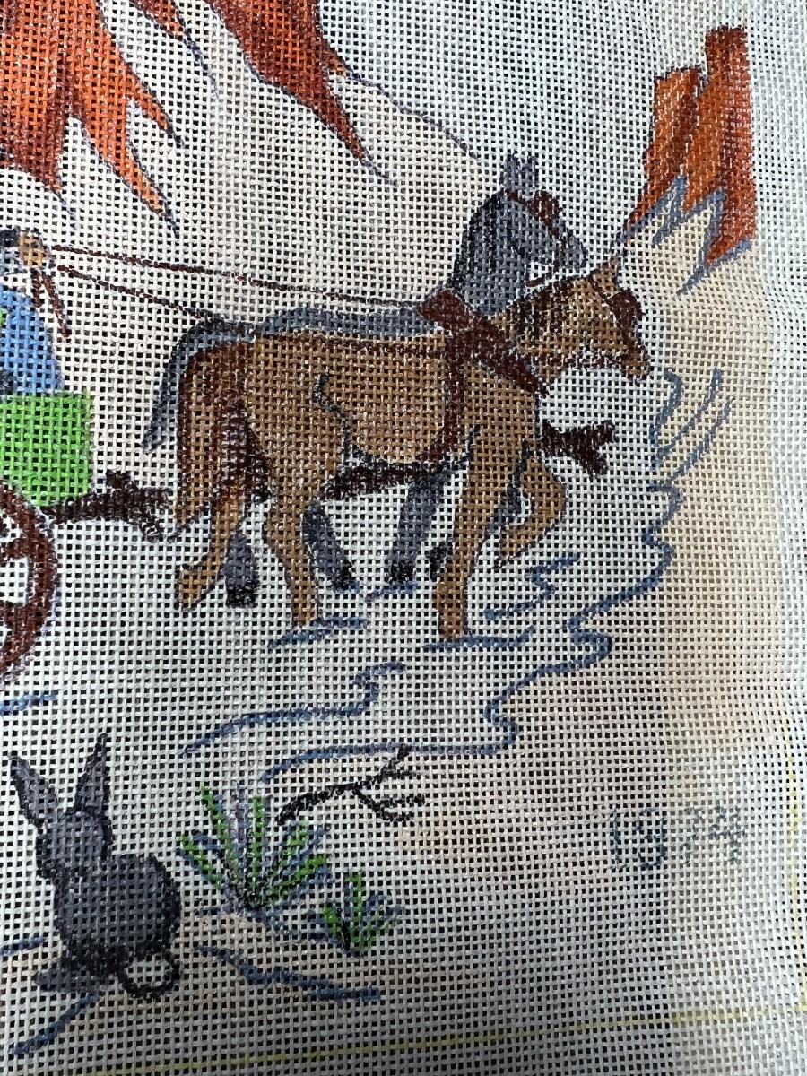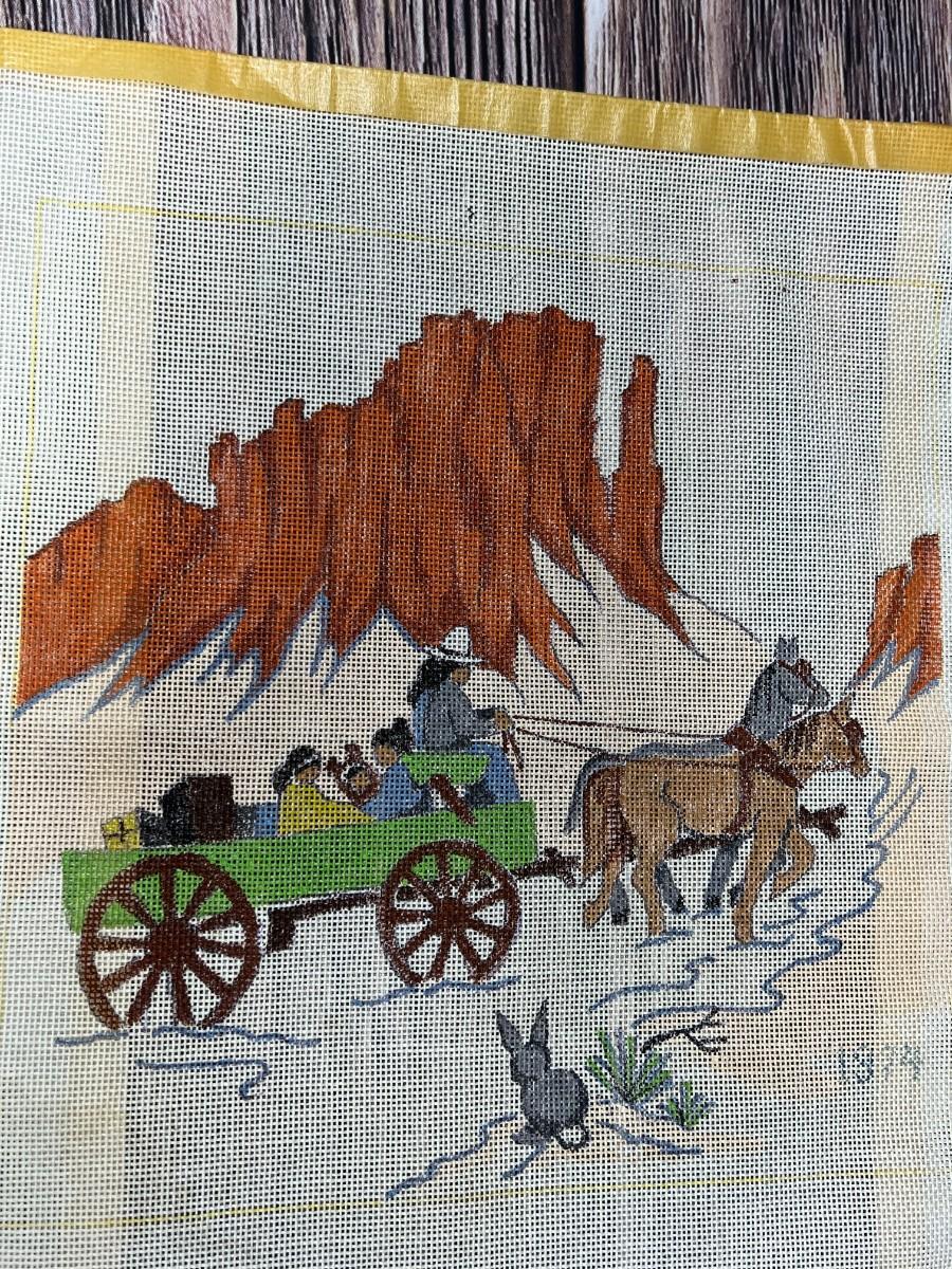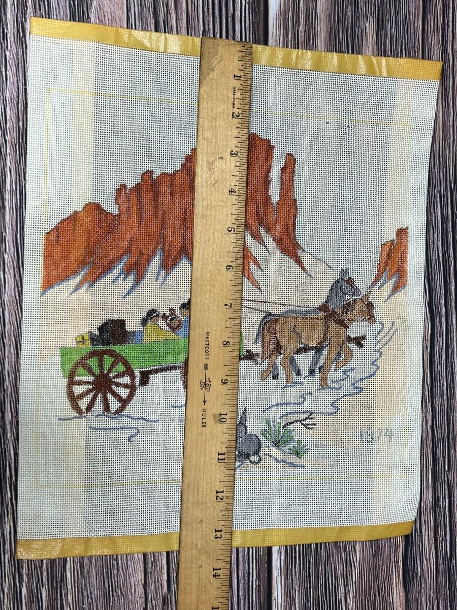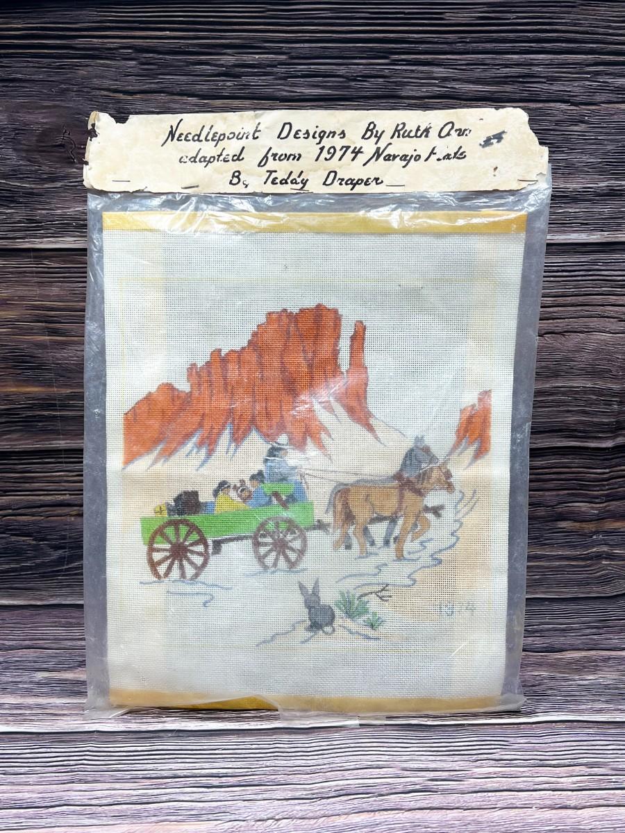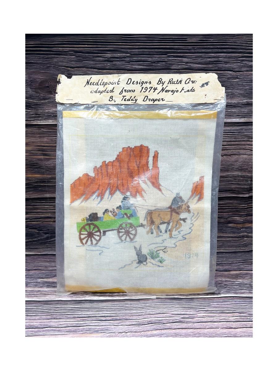Vintage Collectible Western Trail Needlepoint Design Art Canvas by Ruth Ann Based on Navajo Artist Teddy Draper
