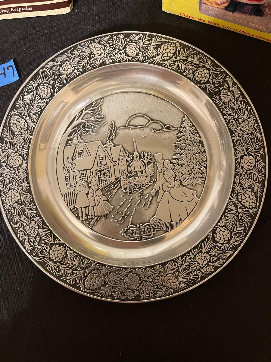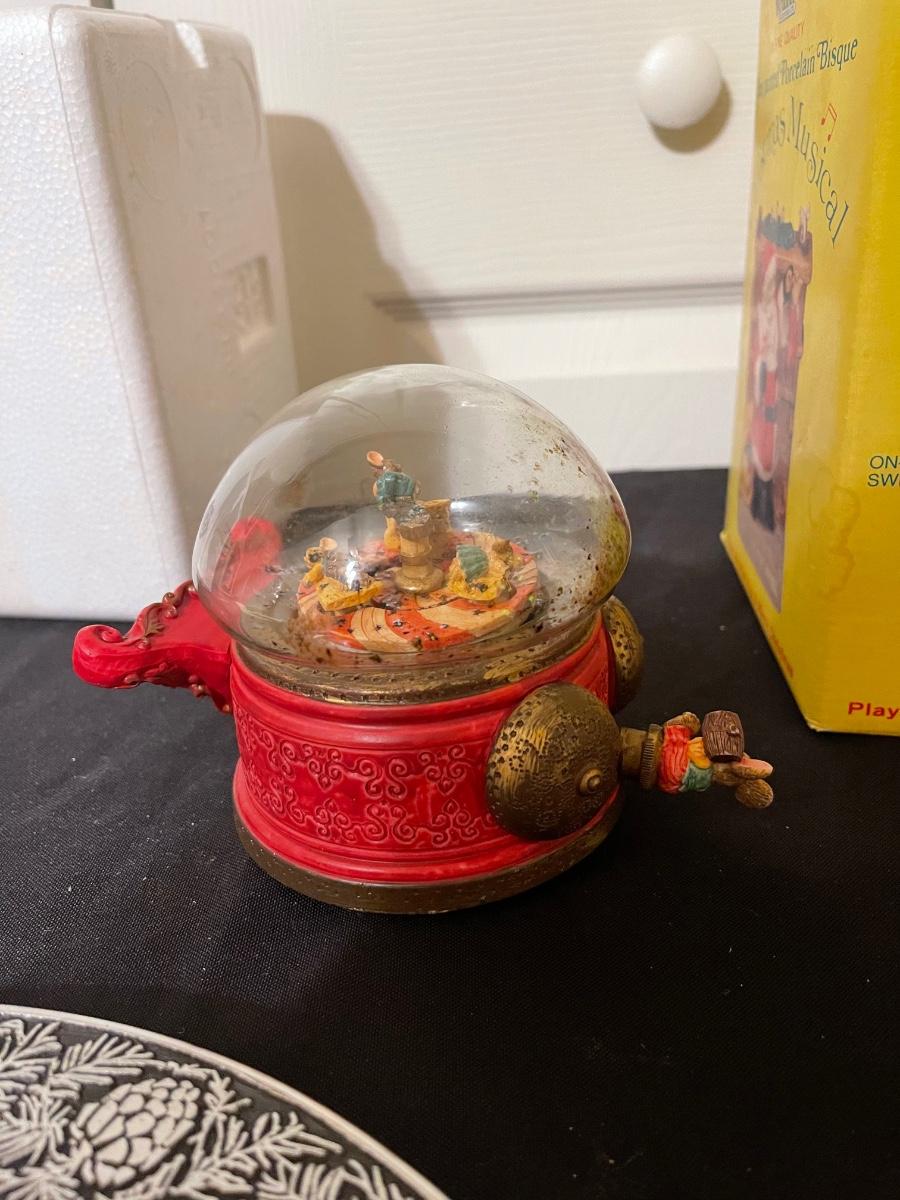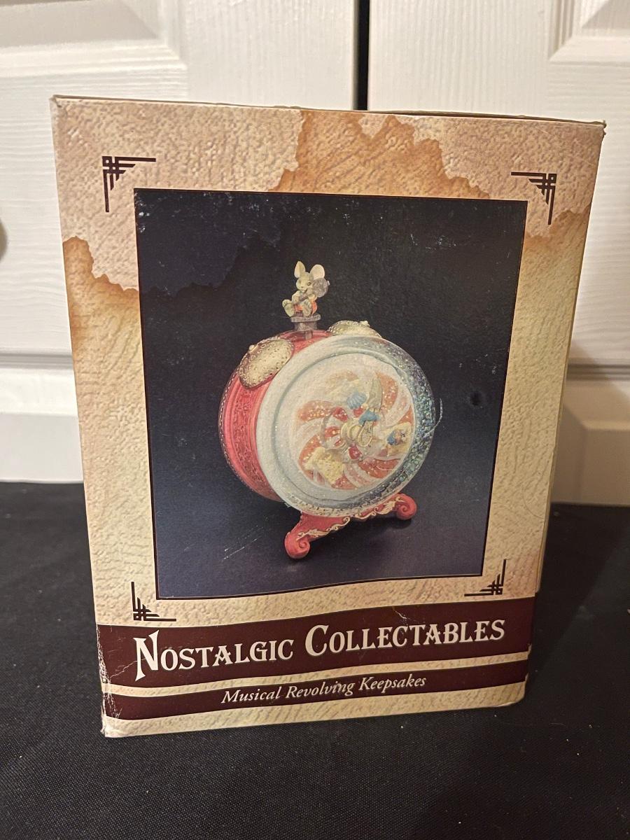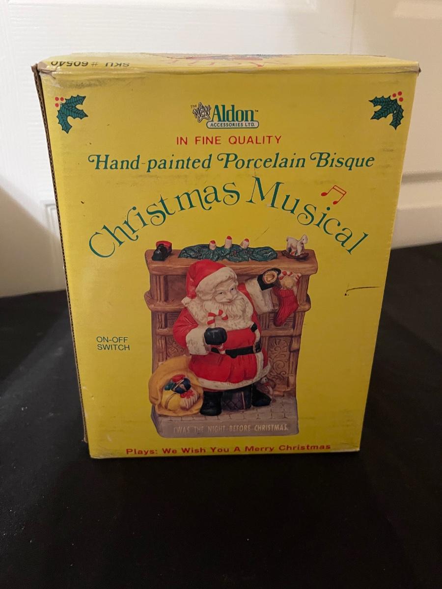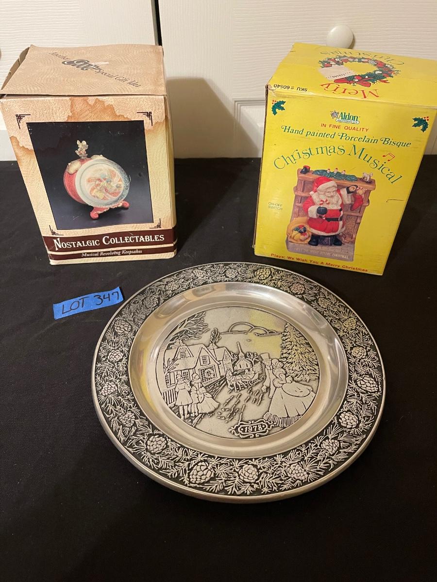 1978 Wilton-Columbia Christmas hanging plate, Nostalgia Collectibles Musical Revolving globe *NIB, Aldon Hand Painted Porcelain Bisque Christmas Musical *NIB.