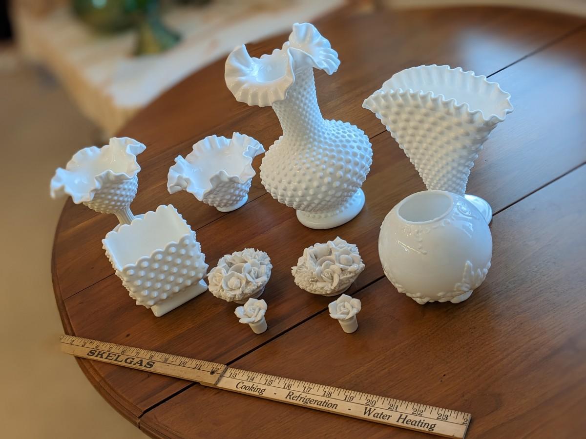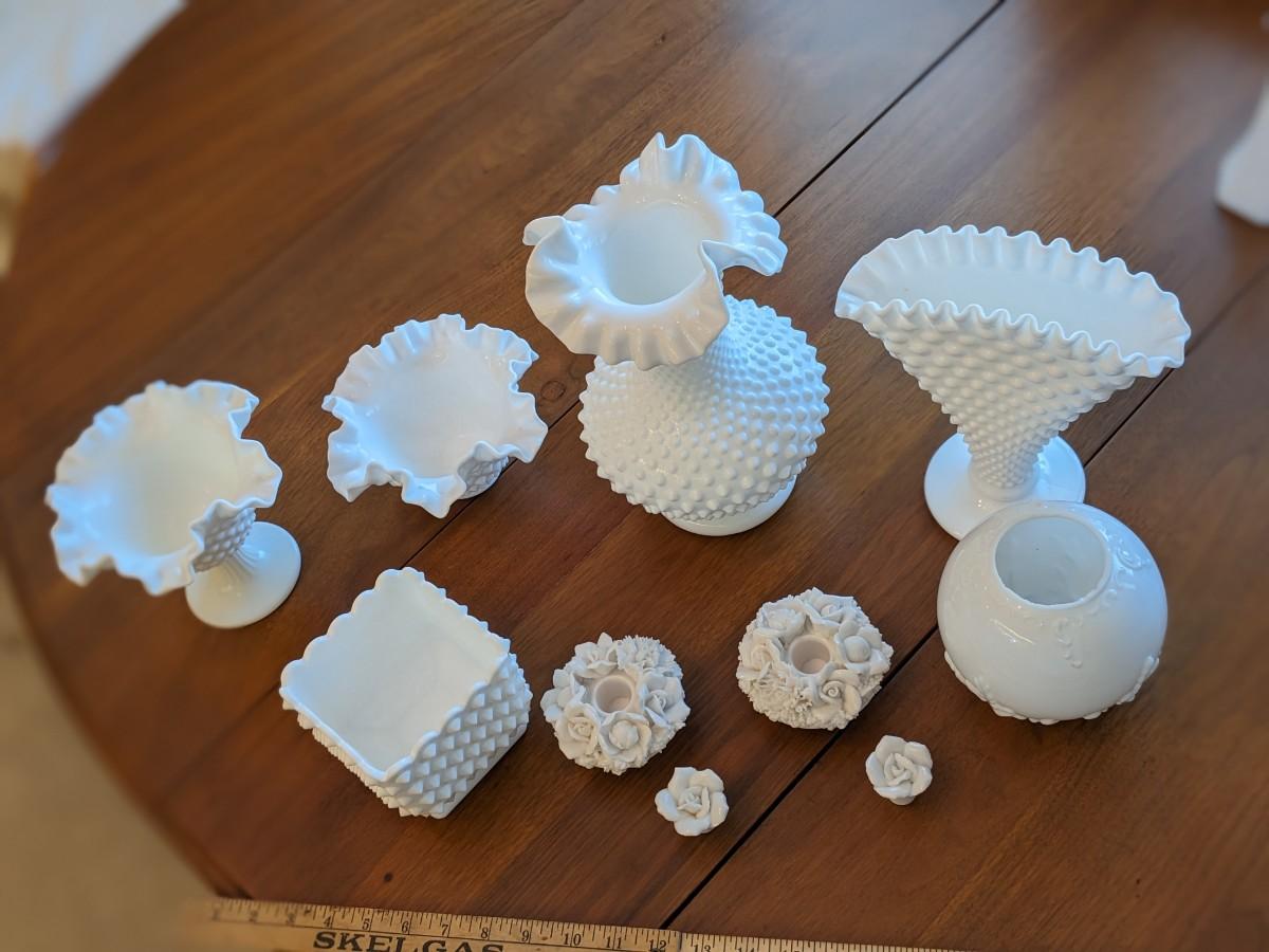 Vintage Collection Fenton Hobnail White Milk Art Glass, flower candle holders