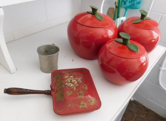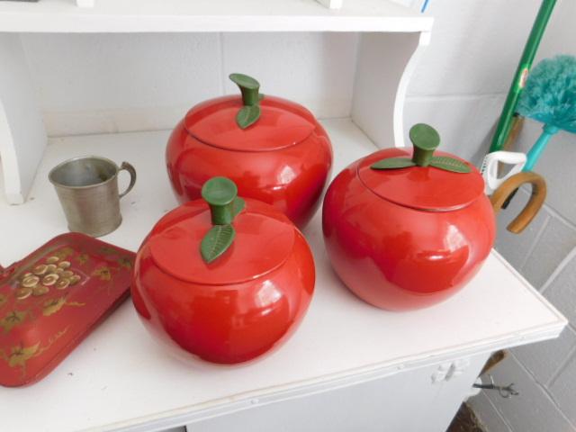 Vintage Collection Metal Apple Canisters and Bed Warmer