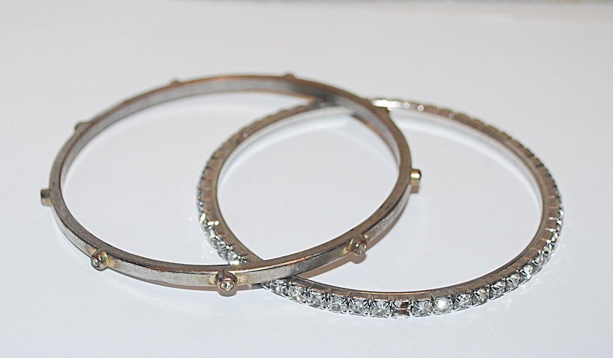 VINTAGE Collection of 2 BRACELETS (2½" Opening) Clear Stones on a Silver Tone Settings