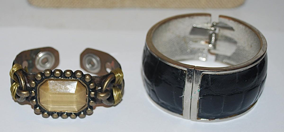 VINTAGE Collection of 2 CUFF BRACELETS - with Large Stone and Metal Accents-Great for a Crafter to Work on