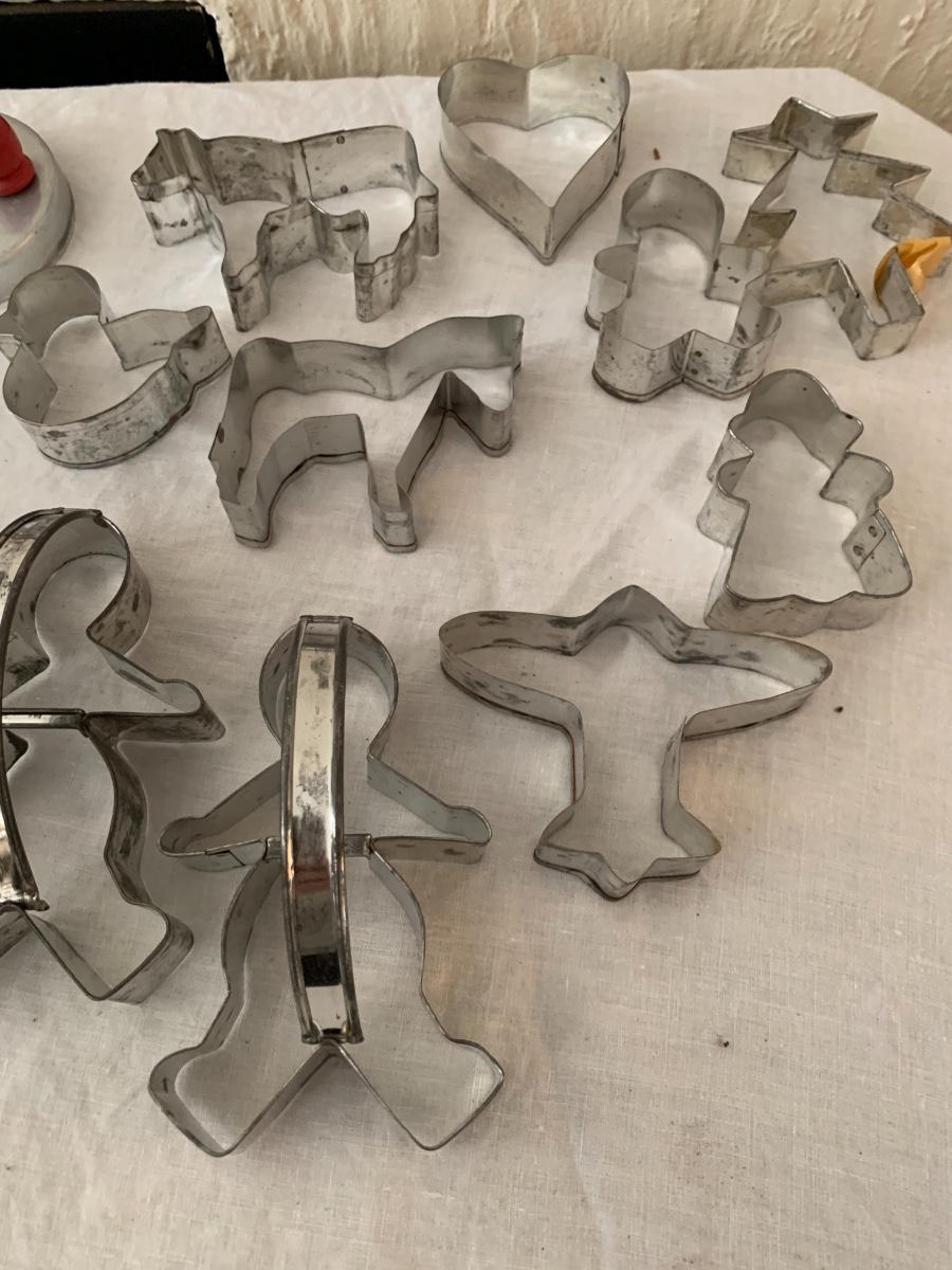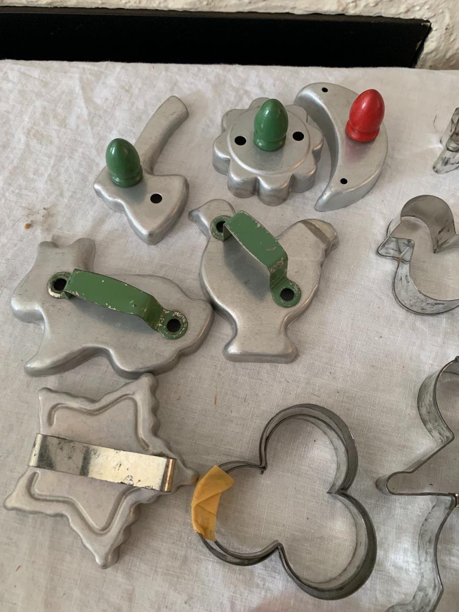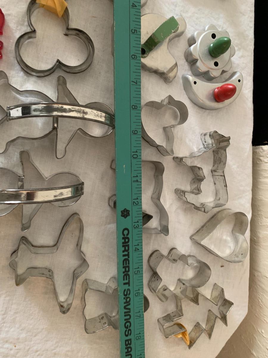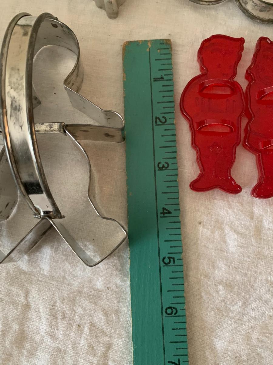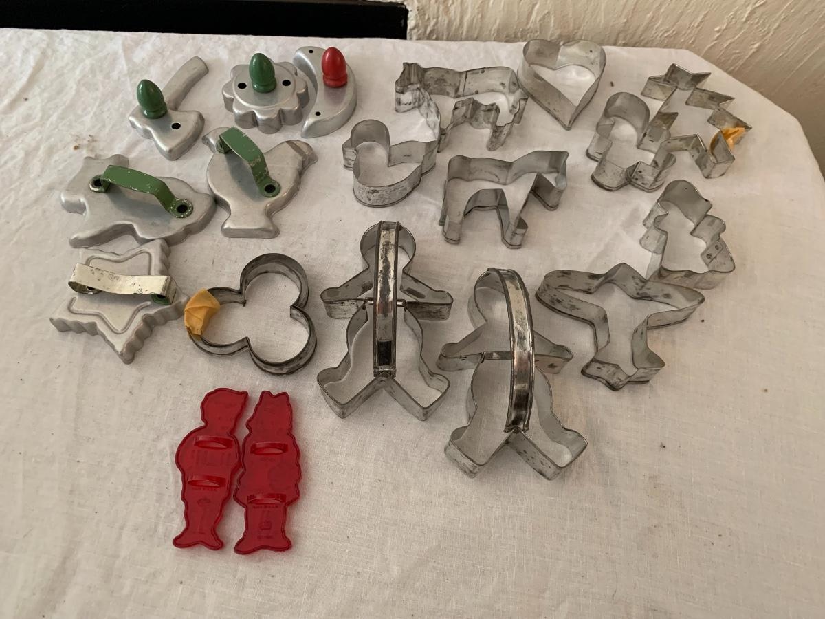 So many shapes and sizes, including a cute pair of vintage plasric boy and girl cookie cutters.