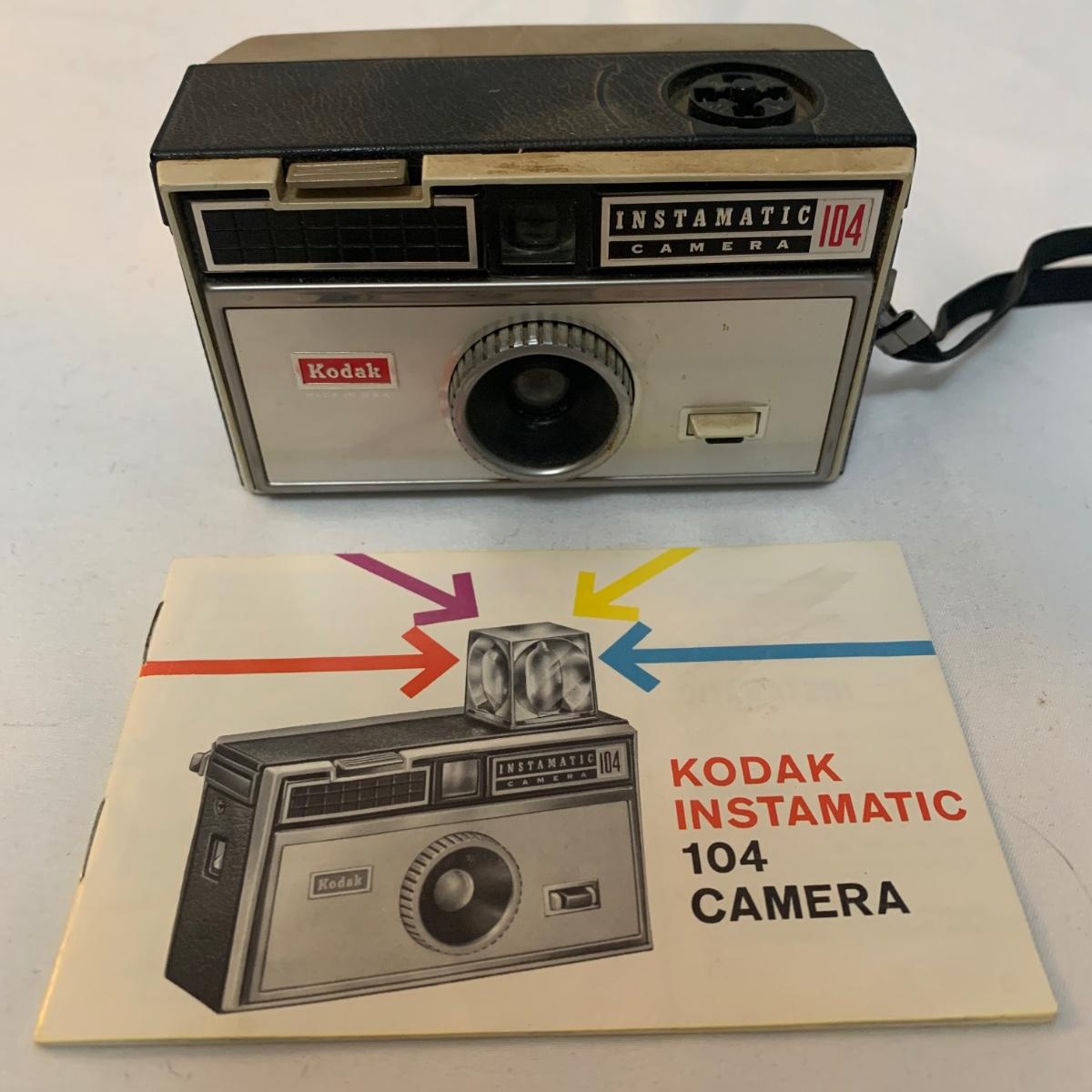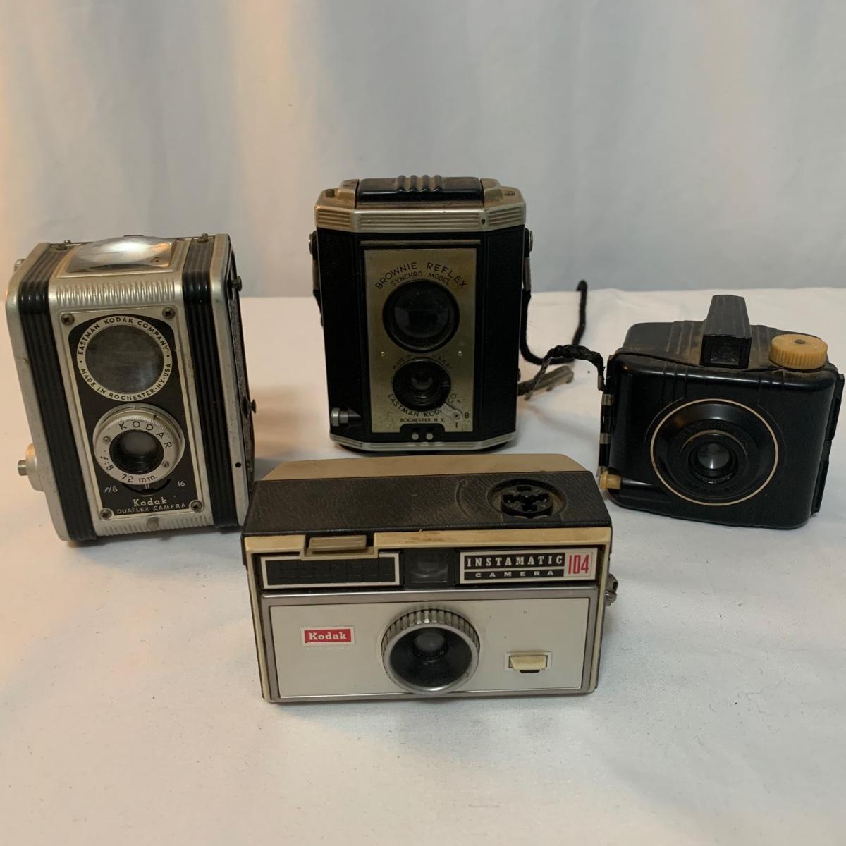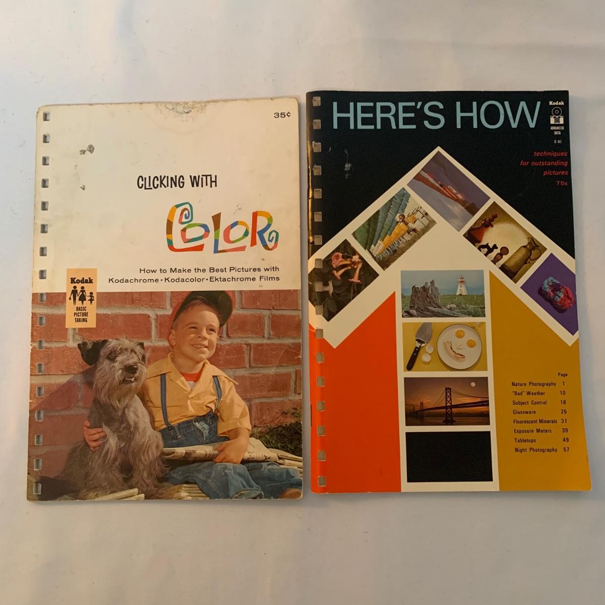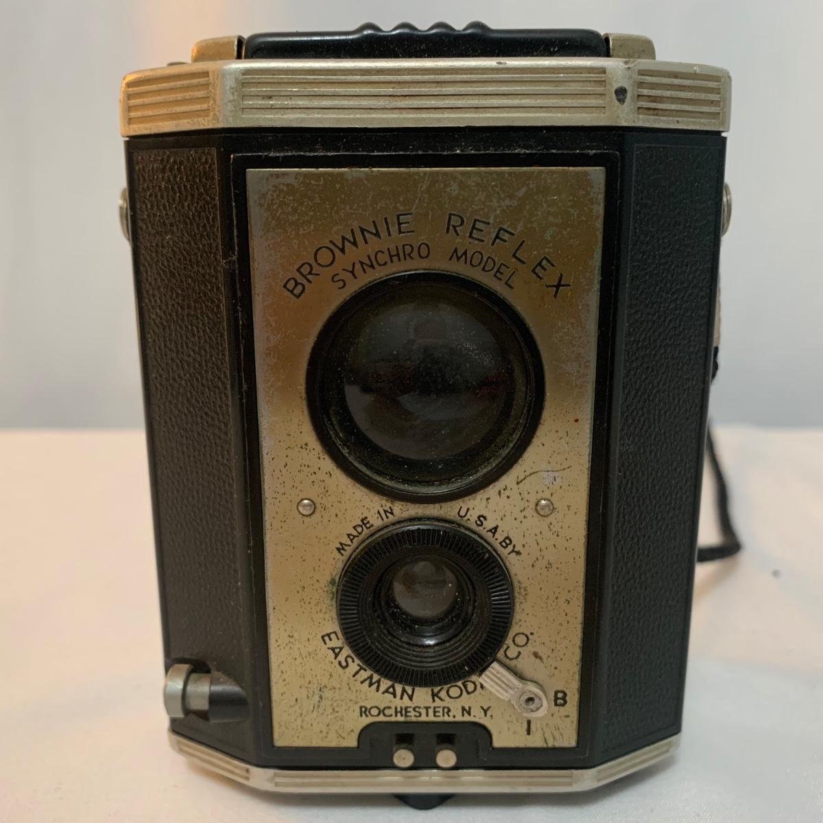 This lot includes a lovely timeline of four Kodak cameras and two vintage photography publications. Kodak F8 72mm, Kodak Brownie Reflex Syncro Model, Kodak Baby Brownie, Kodak Instamatic 104, Clicking with Color book, and Here’s How Kodak techniques book. We are unable to test these cameras functionality. However, working or not these unique pieces would make great additions to any camera collection!