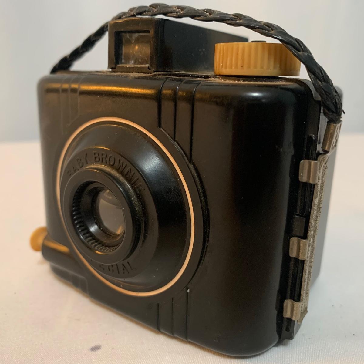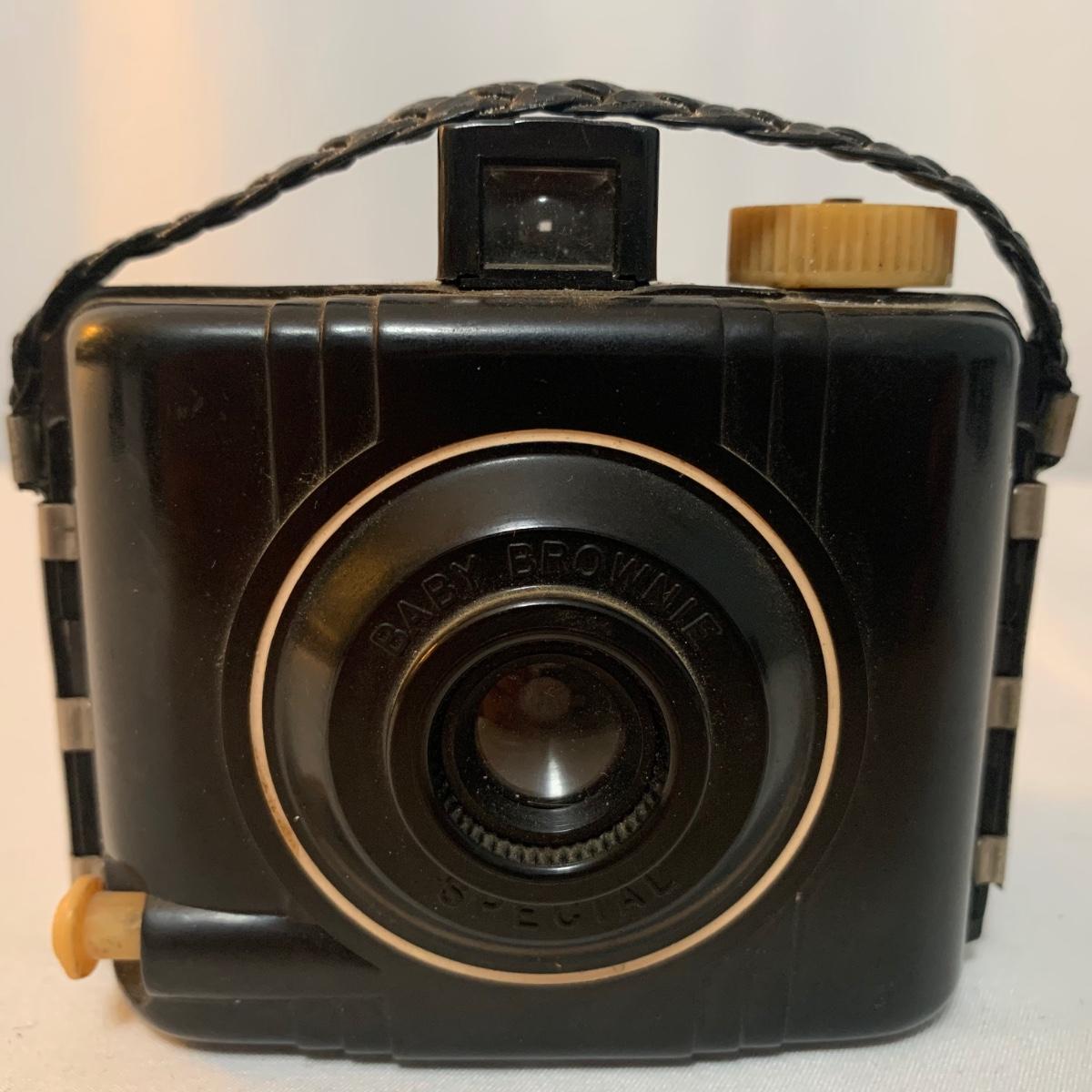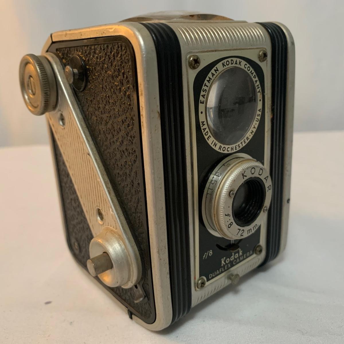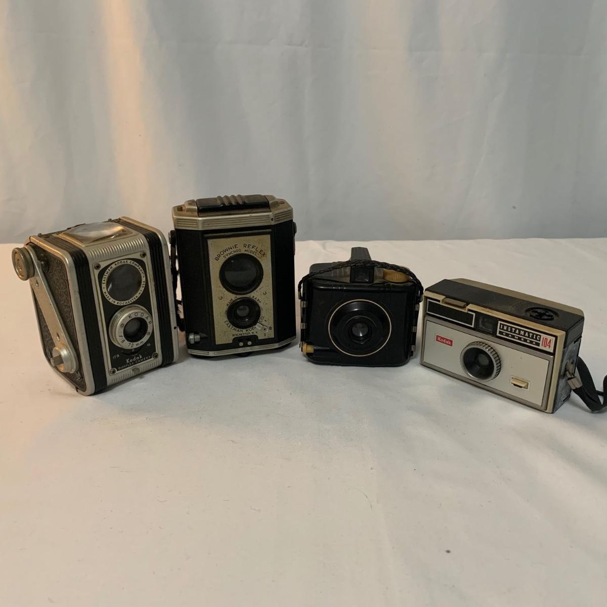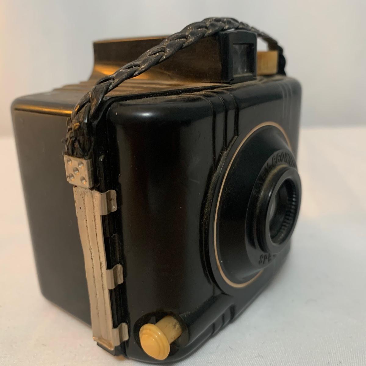 This lot includes a lovely timeline of four Kodak cameras and two vintage photography publications. Kodak F8 72mm, Kodak Brownie Reflex Syncro Model, Kodak Baby Brownie, Kodak Instamatic 104, Clicking with Color book, and Here’s How Kodak techniques book. We are unable to test these cameras functionality. However, working or not these unique pieces would make great additions to any camera collection!