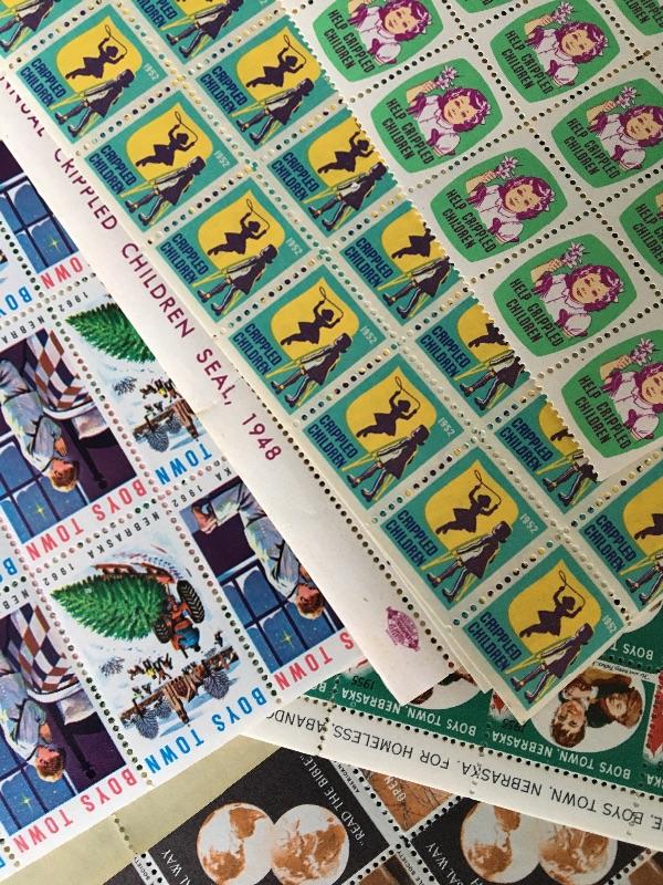 Vintage Collection of Mid Century Annual Seal Stamps Lot #2 of 30+ Sheets
