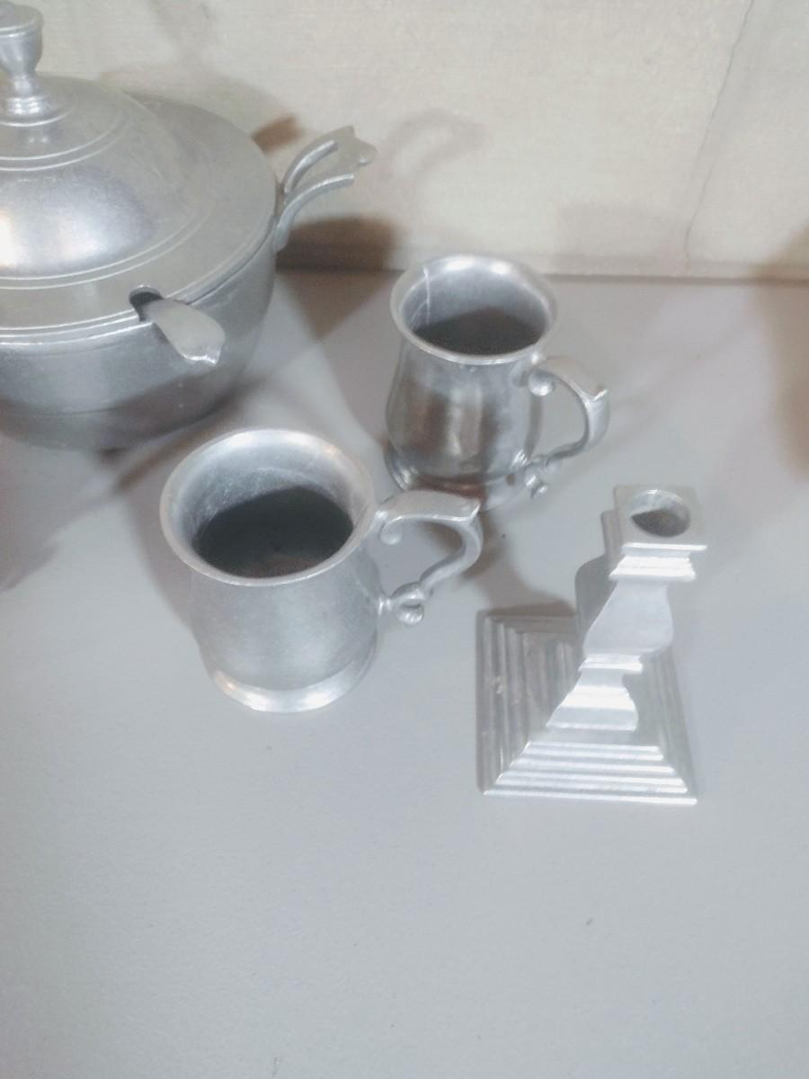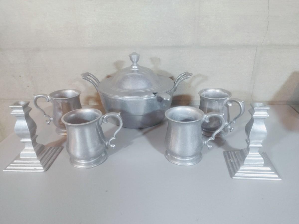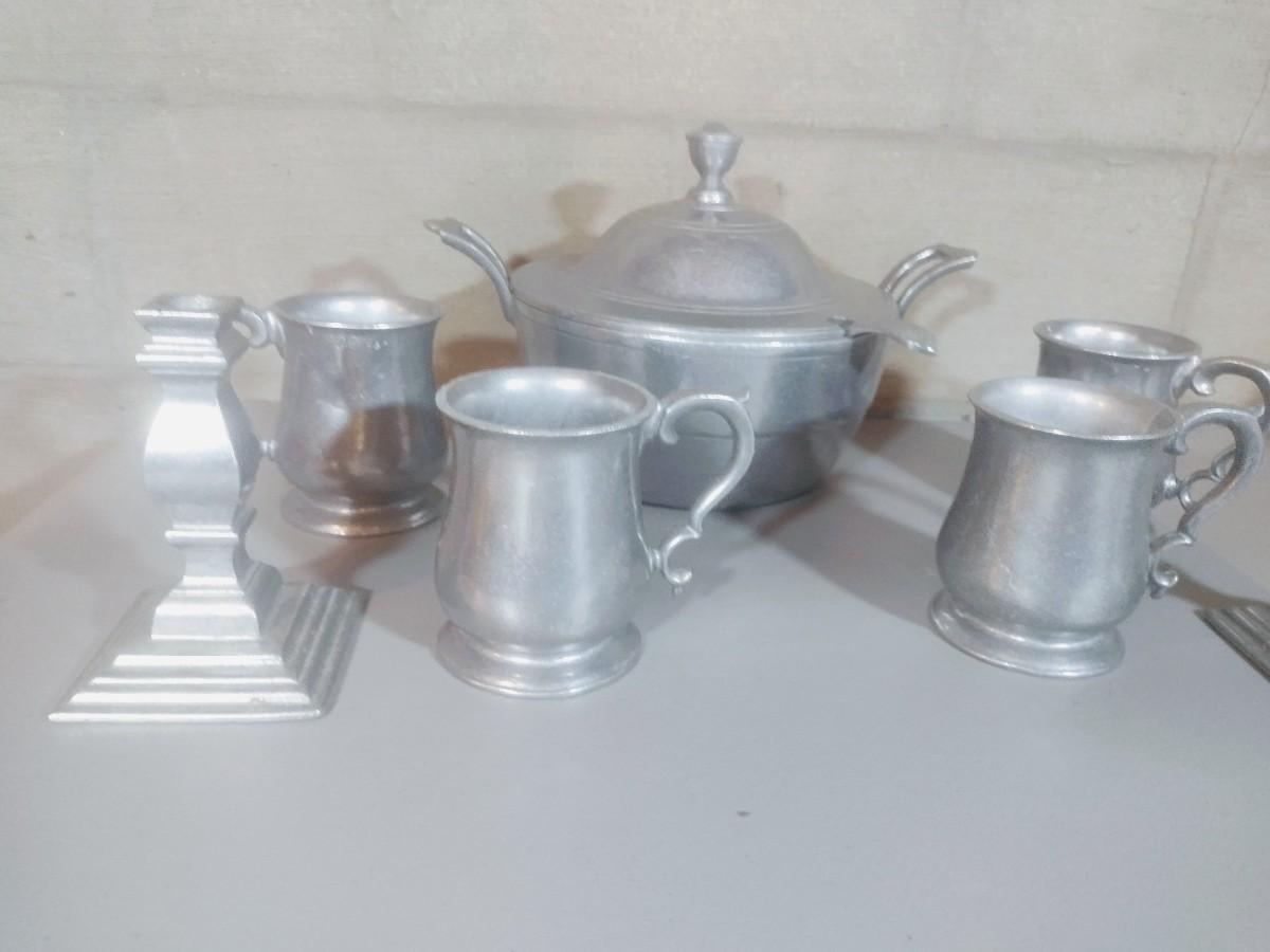 Vintage Collection of Wilton Armetale Pewter Tankards, Candle Stick Holders, and Soup Tureen