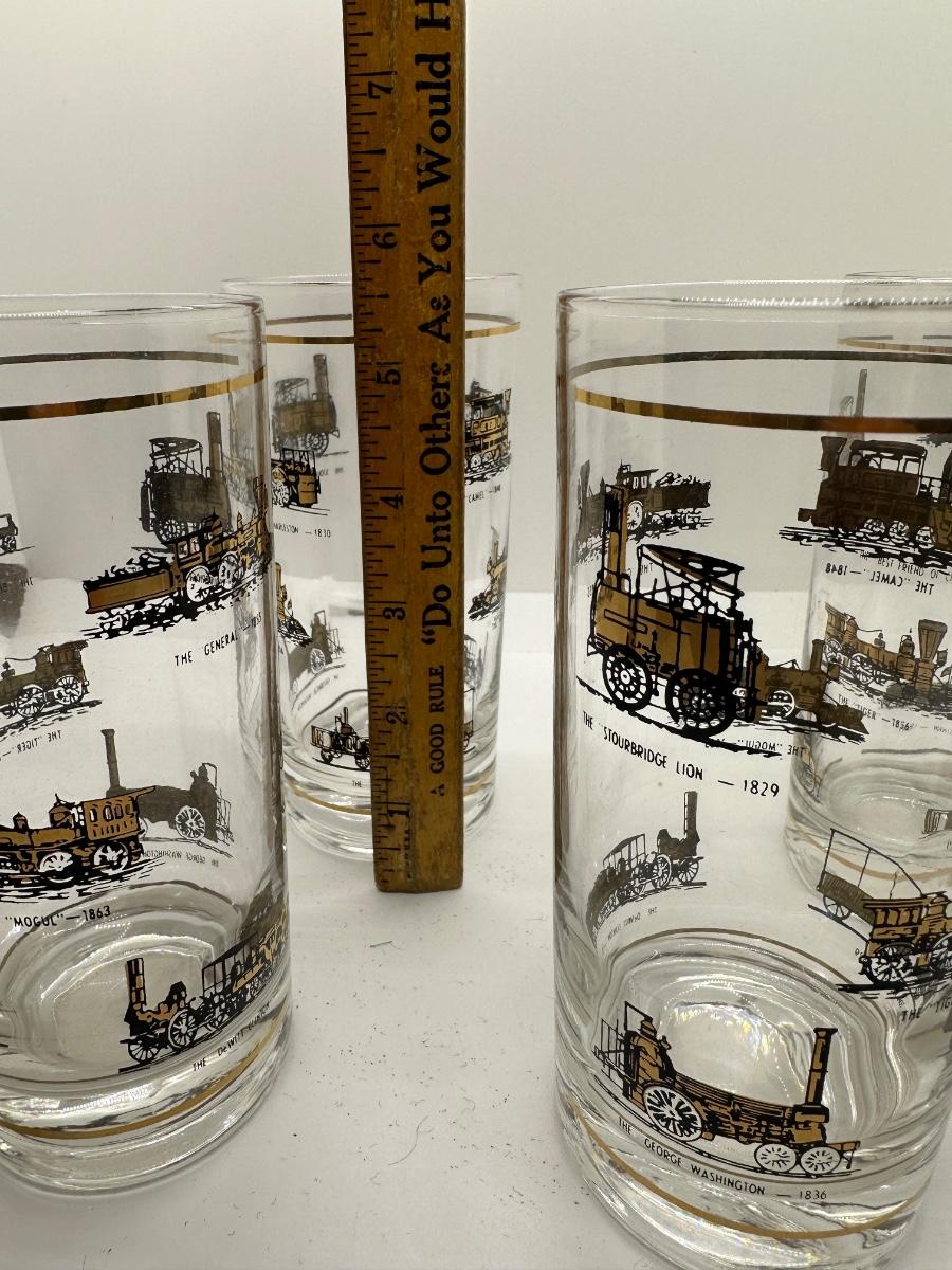 Set of (4) Vintage Collectors Glasses of Trains (See Description)