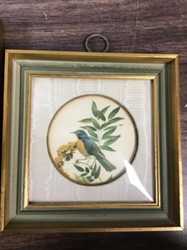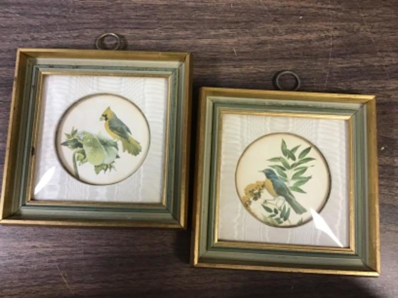 Vintage Collotype Pair Framed Birds