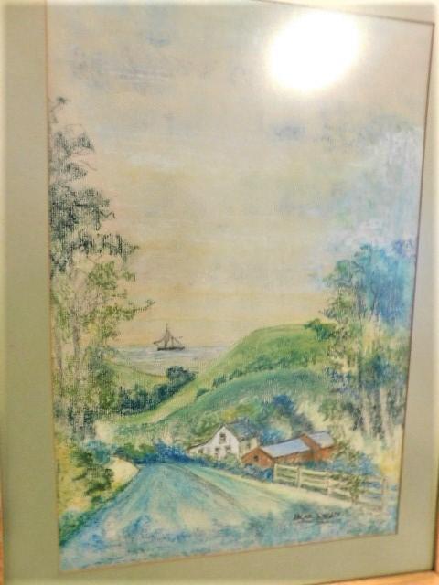 Vintage Color Pencil Landscape Art by Local Artist Signed E. Welty