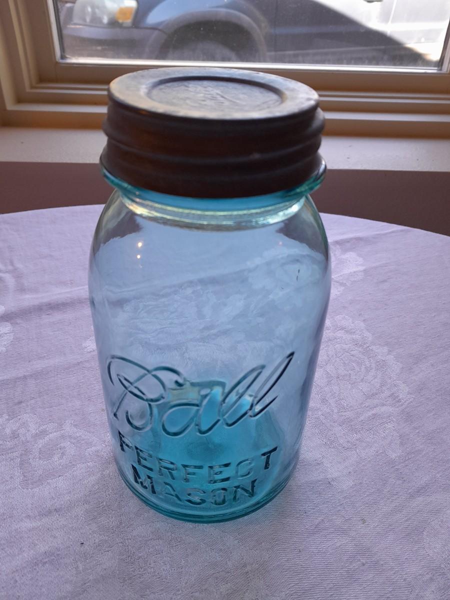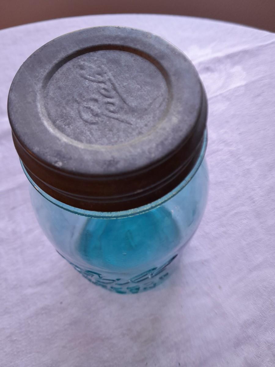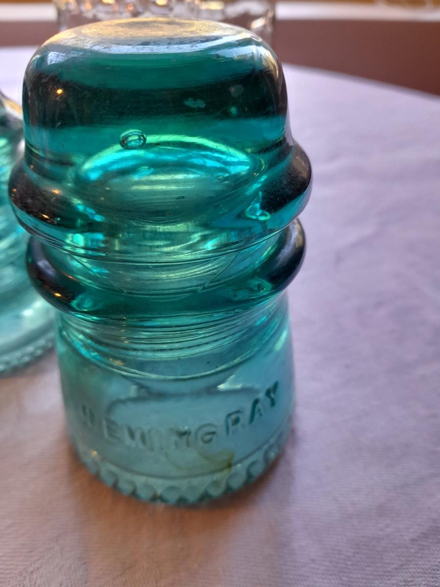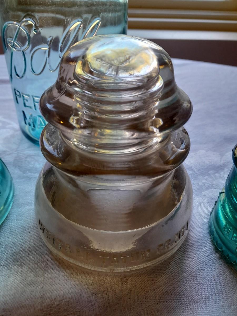 VINTAGE COLORED GLASS INSULATORS AND ZINC LIDDED JARS