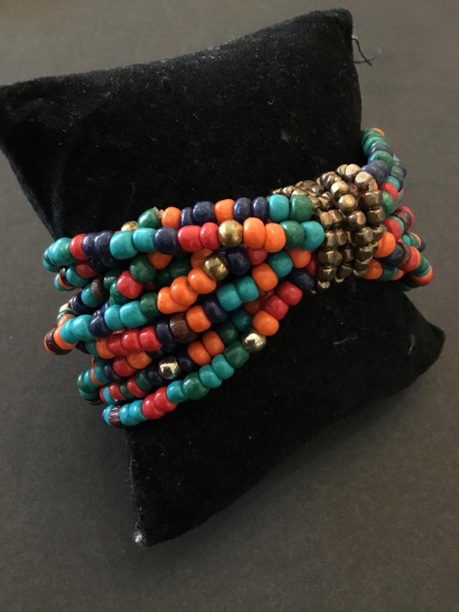 Vintage, colorful glass bead stretch bracelet