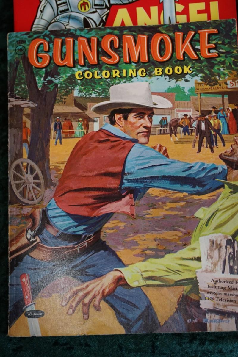 you might find one page that was started but from what I could find they have not been colored in. Crayons provided that have not been used. Guys check out Gunsmoke and Space Angel. four coloring books, six activity books, five lesson books