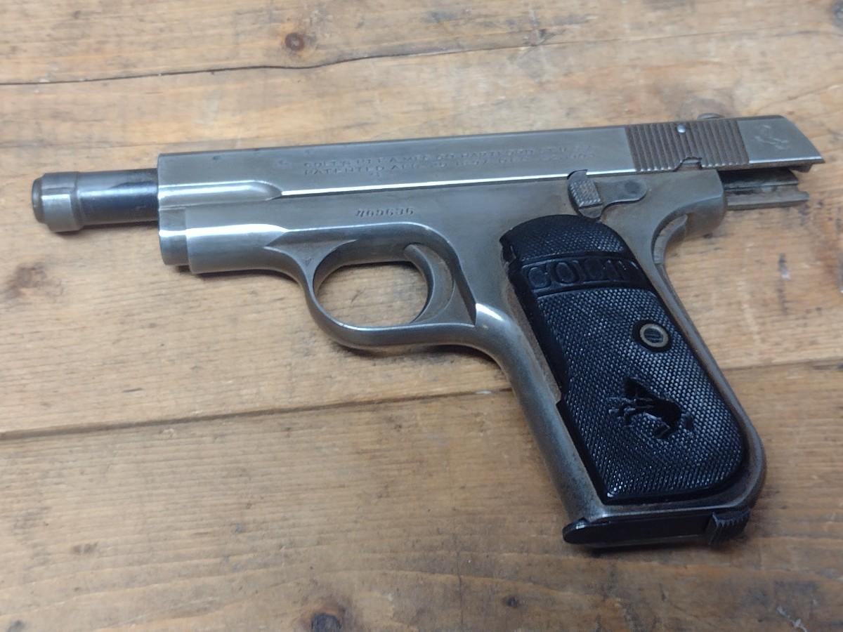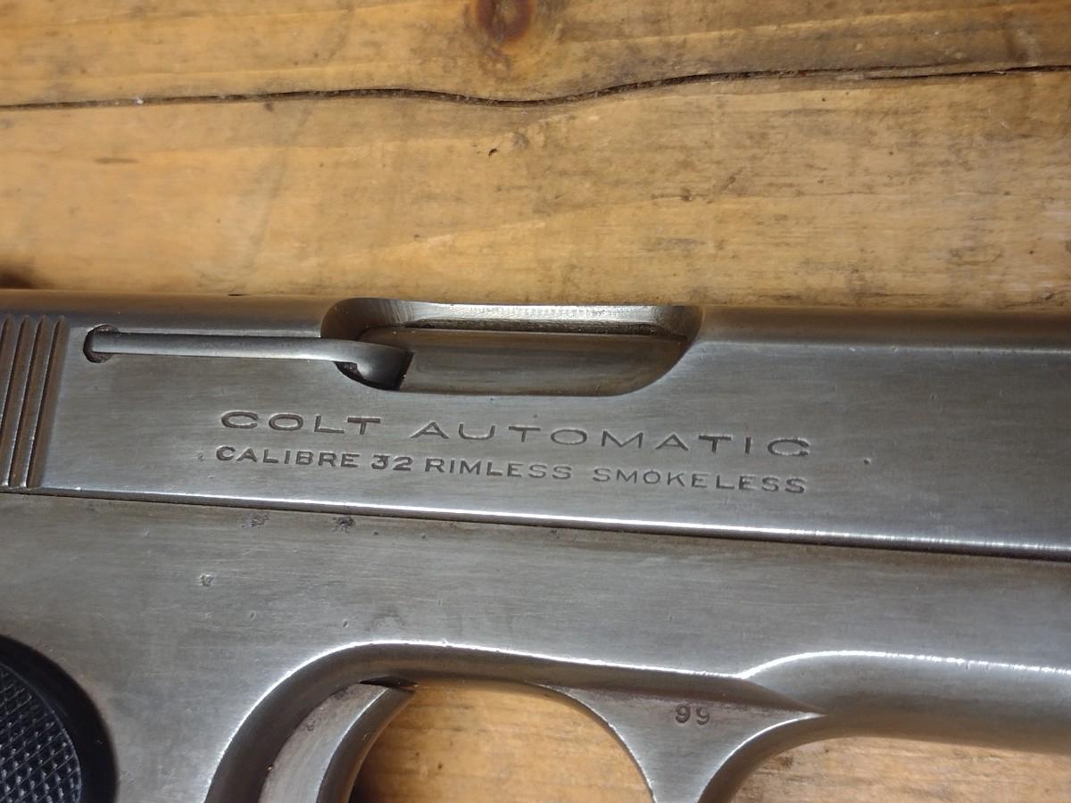 Colt Automatic .32 Caliber Rimless Smokeless Firearm. Must be 21 years old to purchase and have a valid NC driver's license to remove from sale site. Out-of-state buyer must have the firearm shipped to local FFL. No direct shipping. Non-residents are responsible for air freight shipping costs per Federal law. No California sales. Please know your local state laws prior to bidding.