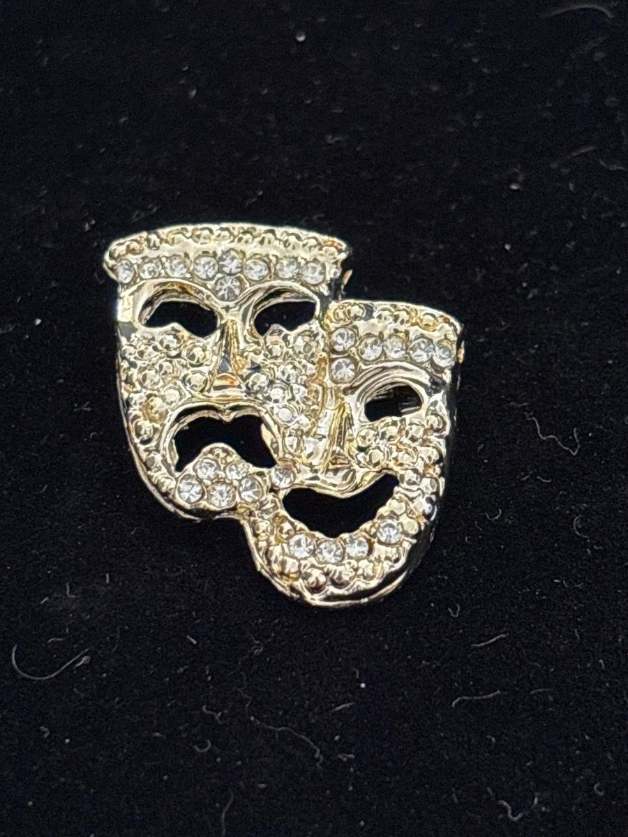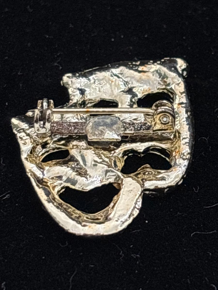 Vintage Comedy Tragedy Theater Mask Face Rhinestone Pin Brooch