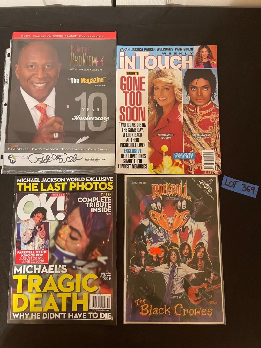 Rock & Roll comics "The Black Crowes", (2) Michael Jackson magazines, Rick Walker authentic signature on Doc Walkers proview 10 year anniversary magazine