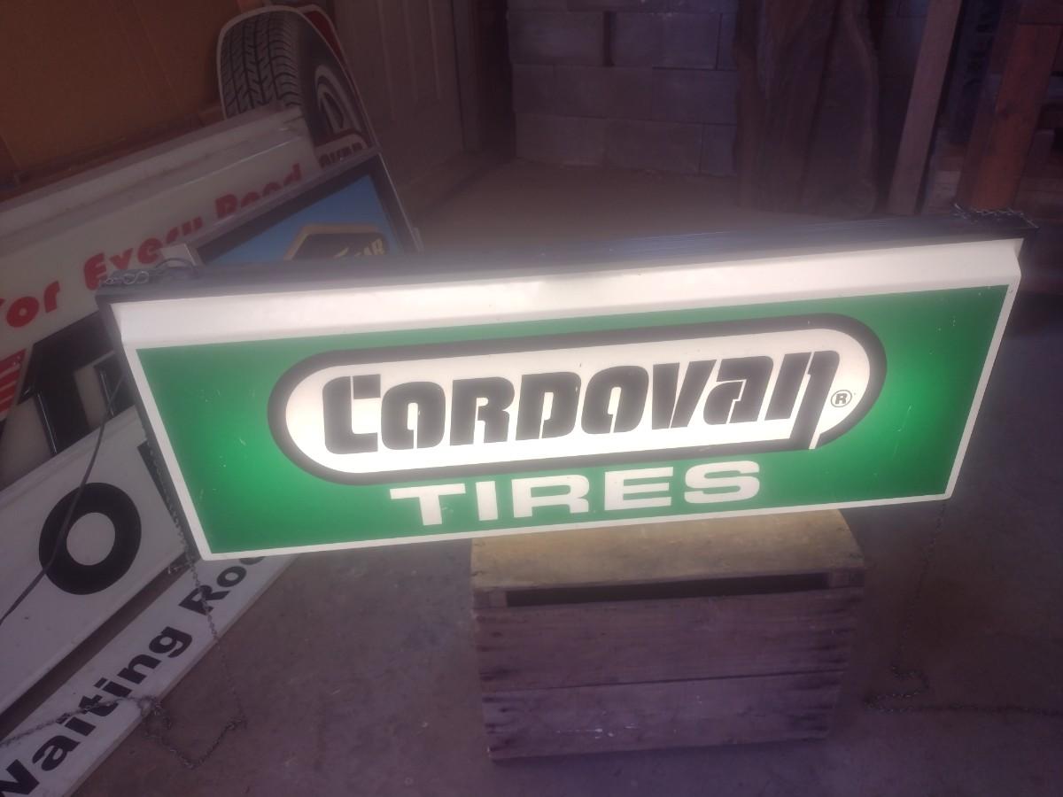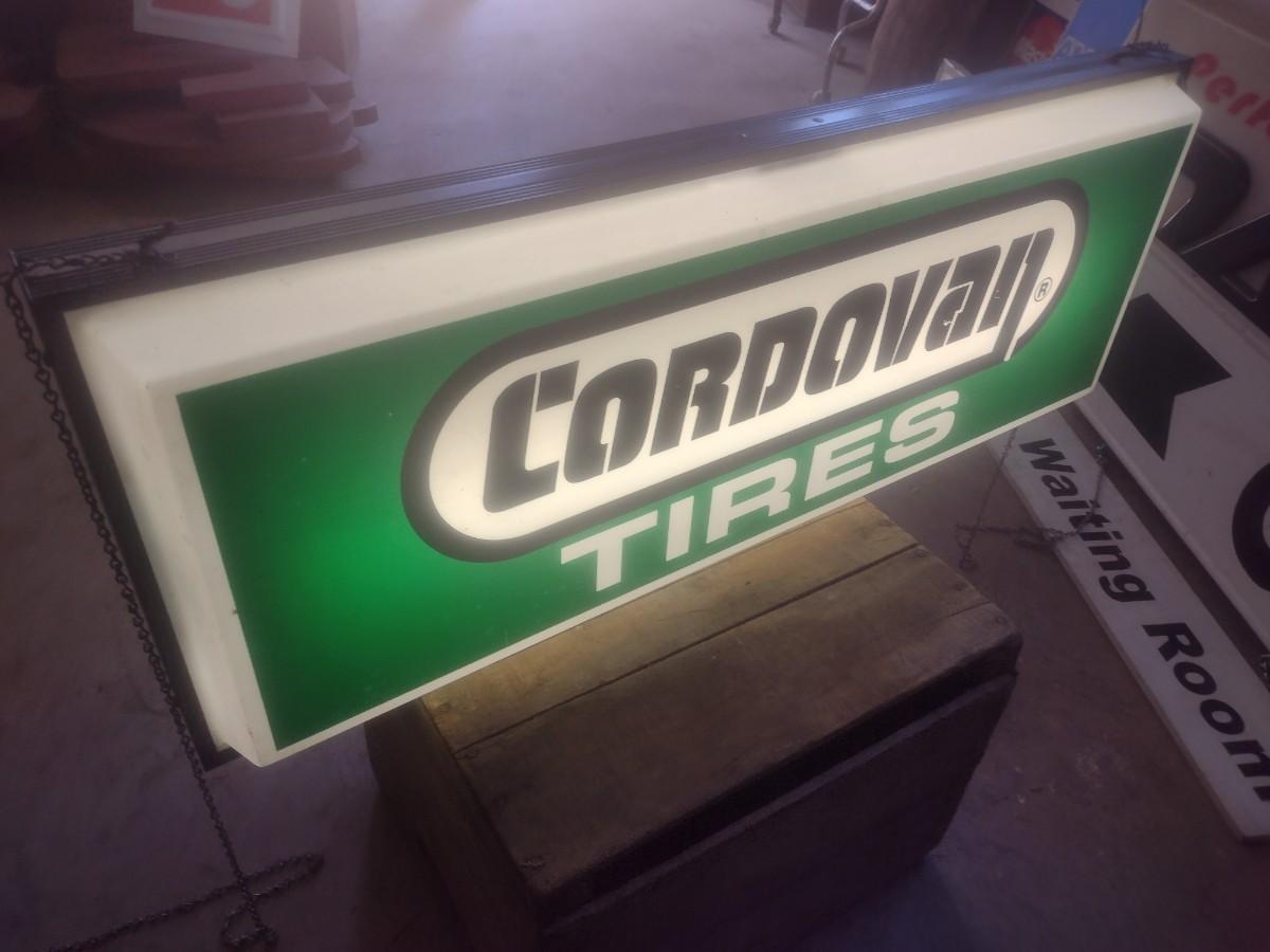 Vintage Commercial Double Sided Back Lit Advertising Sign Cordovan Tires