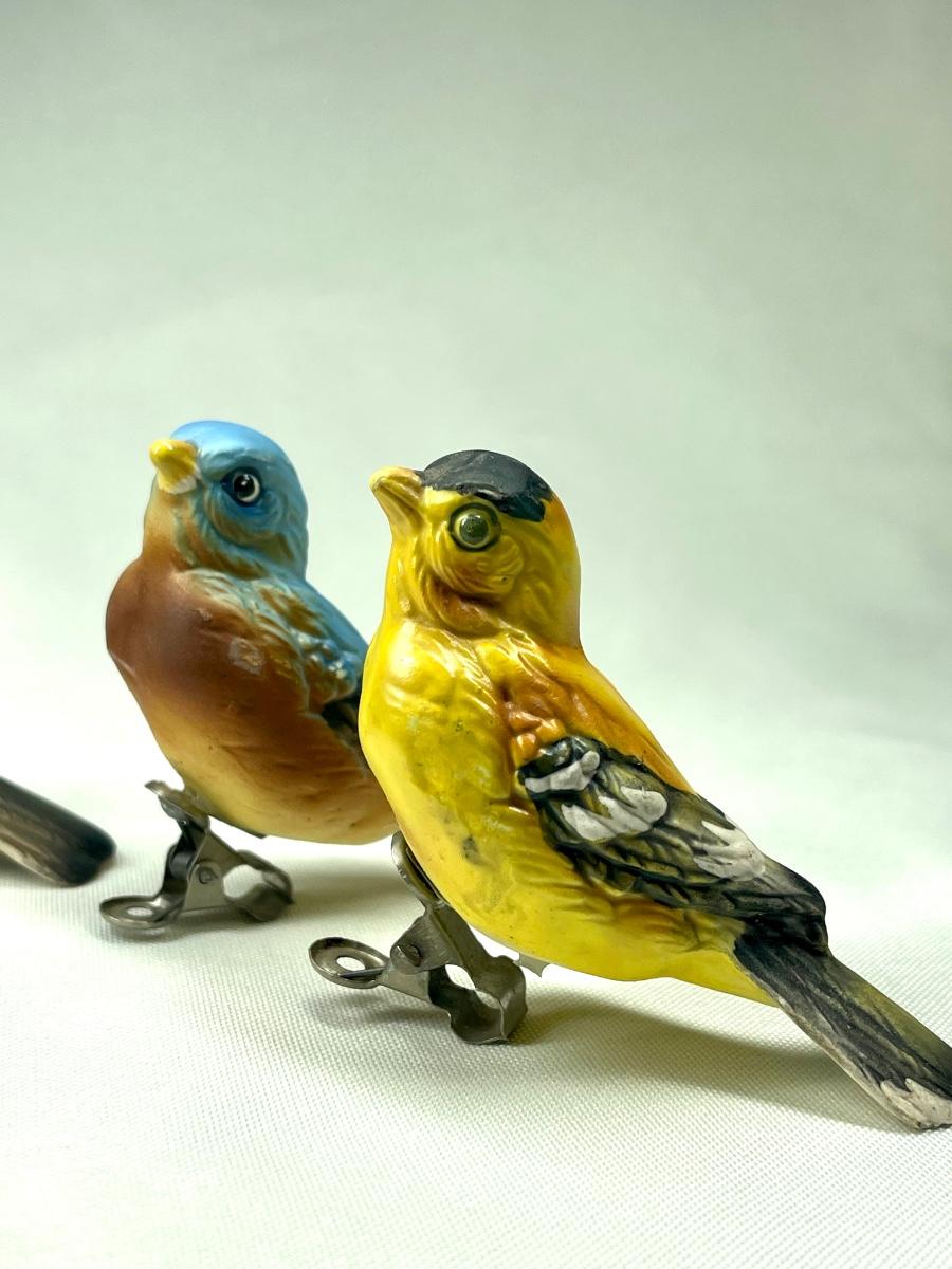 These little sweet birds were to keep your canary company. Back in the day when everyone had a bird you would clip these on the bird cage as a companion bird. These are the cutest things. If you just love birds you can put them anywhere!