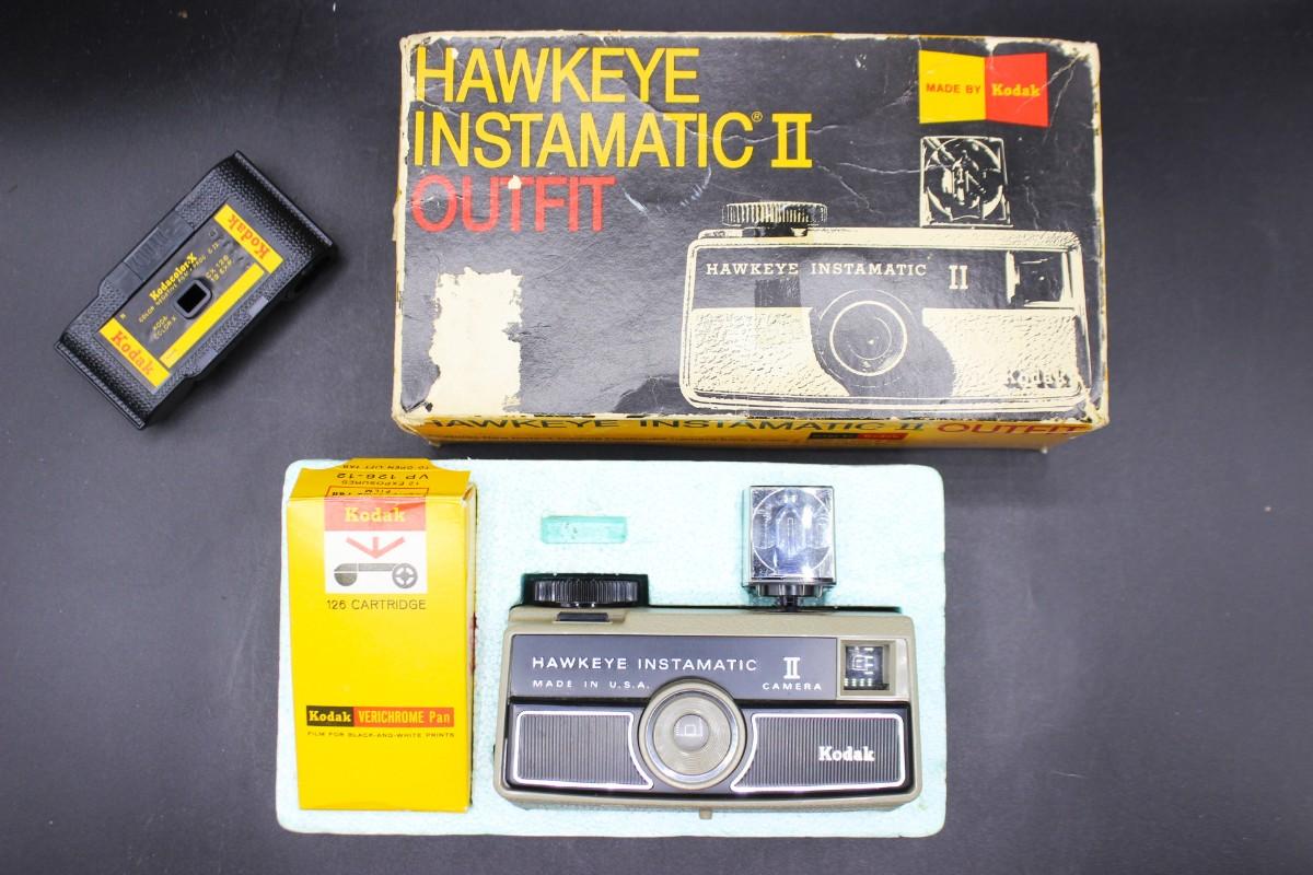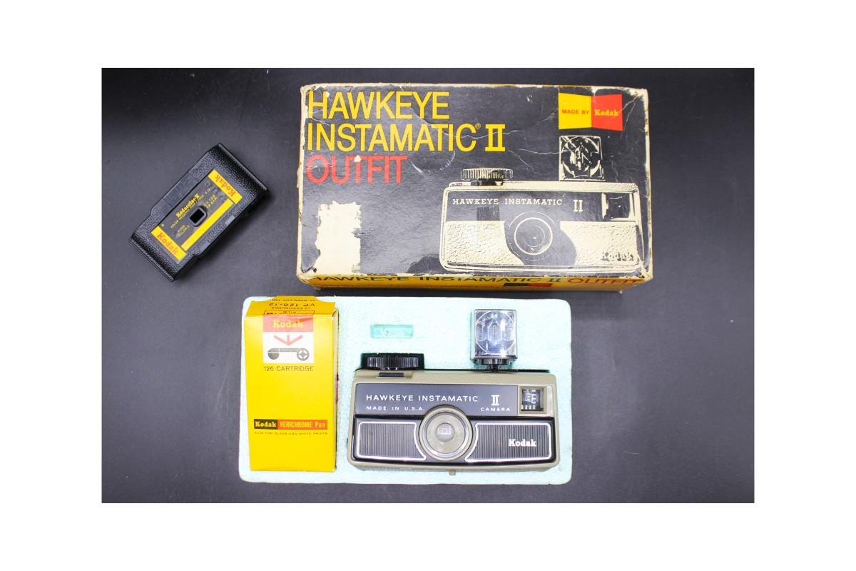 Vintage Complete Kodak Hawkeye Instamatic II Outfit, there is some vintage wear to the box, but there is no significant damage to the camera and the film that comes in the box has been unsued. Check pictures for more details and for sizing.