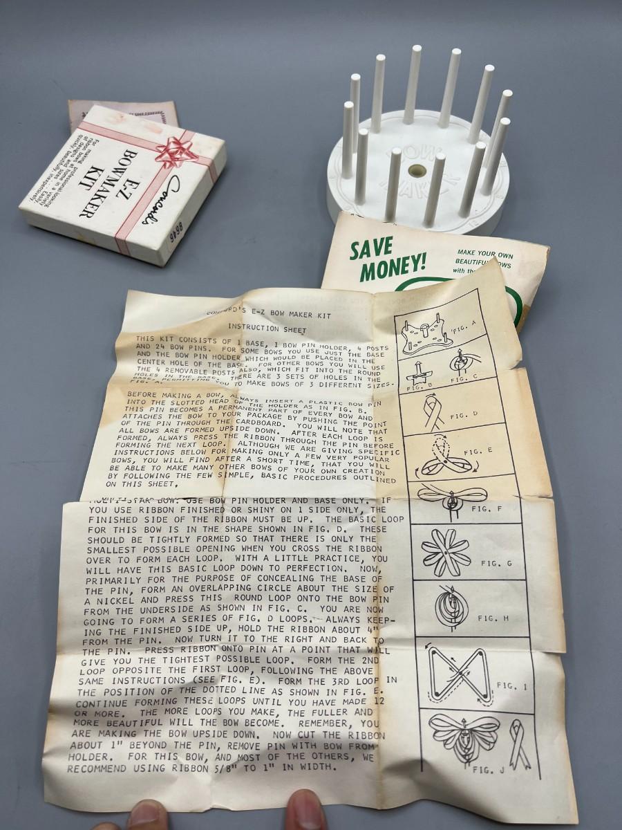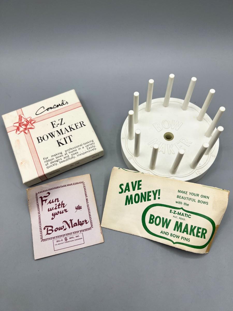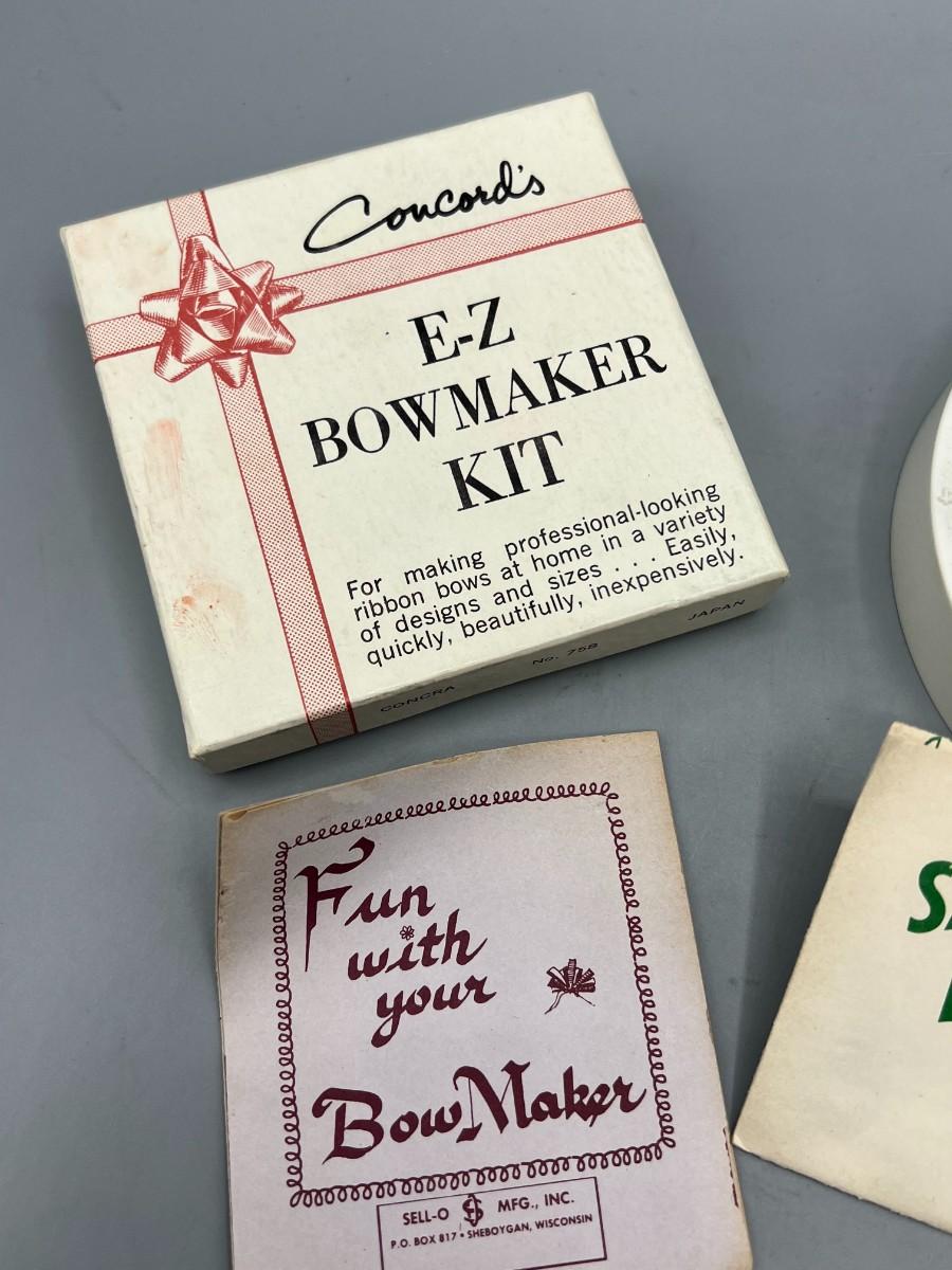 Vintage Concords E-Z Bow Maker Kit, there is some vintage wear to the kit, but there is no significant damage and is in overall good collectible condition. Check pictures for what comes in the lot, check pictures for more details and for sizing.