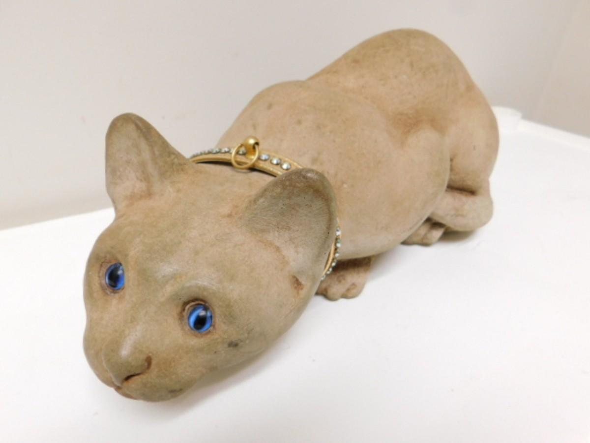 Vintage Concrete Cat with Glass Eyes 15"