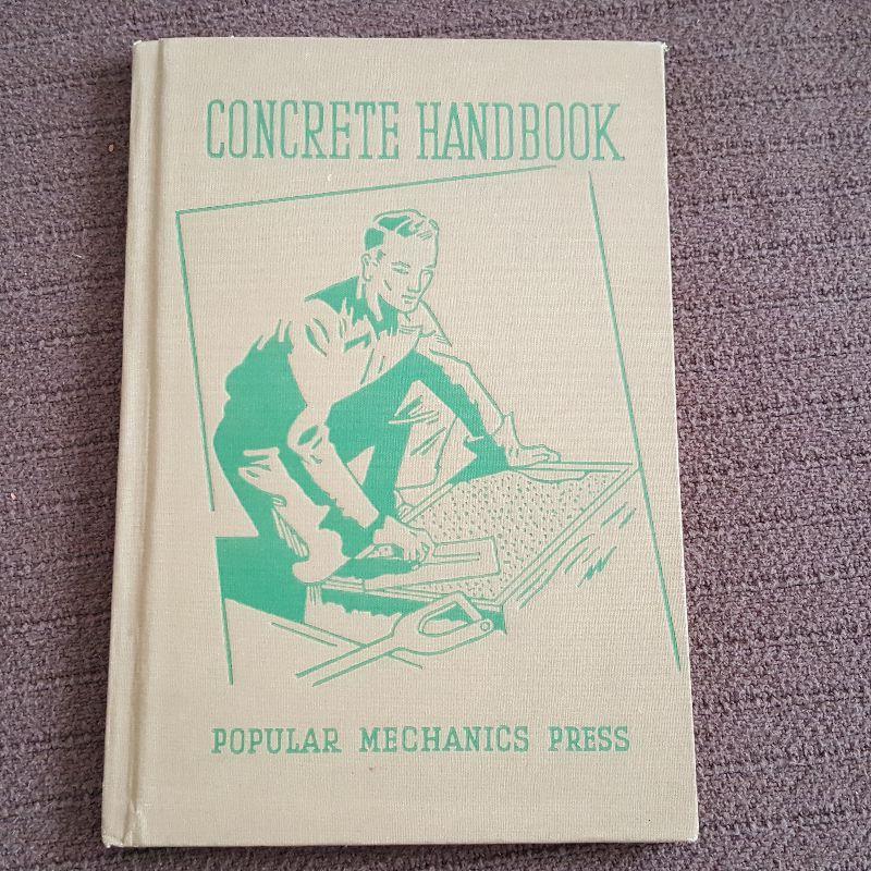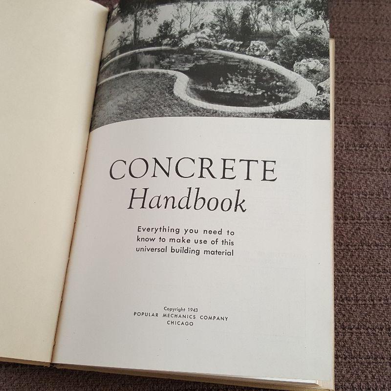 This auction lot is for a copy of the vintage Concrete Handbook. This nice small book of concrete knowledge was published by Popular Mechanics Press in 1943. It is chocked full of concrete hints, tips and secrets. Make your own concrete pots or walkway. Here is the know-how in a beautiful 96-page book. Great vintage workman's find.