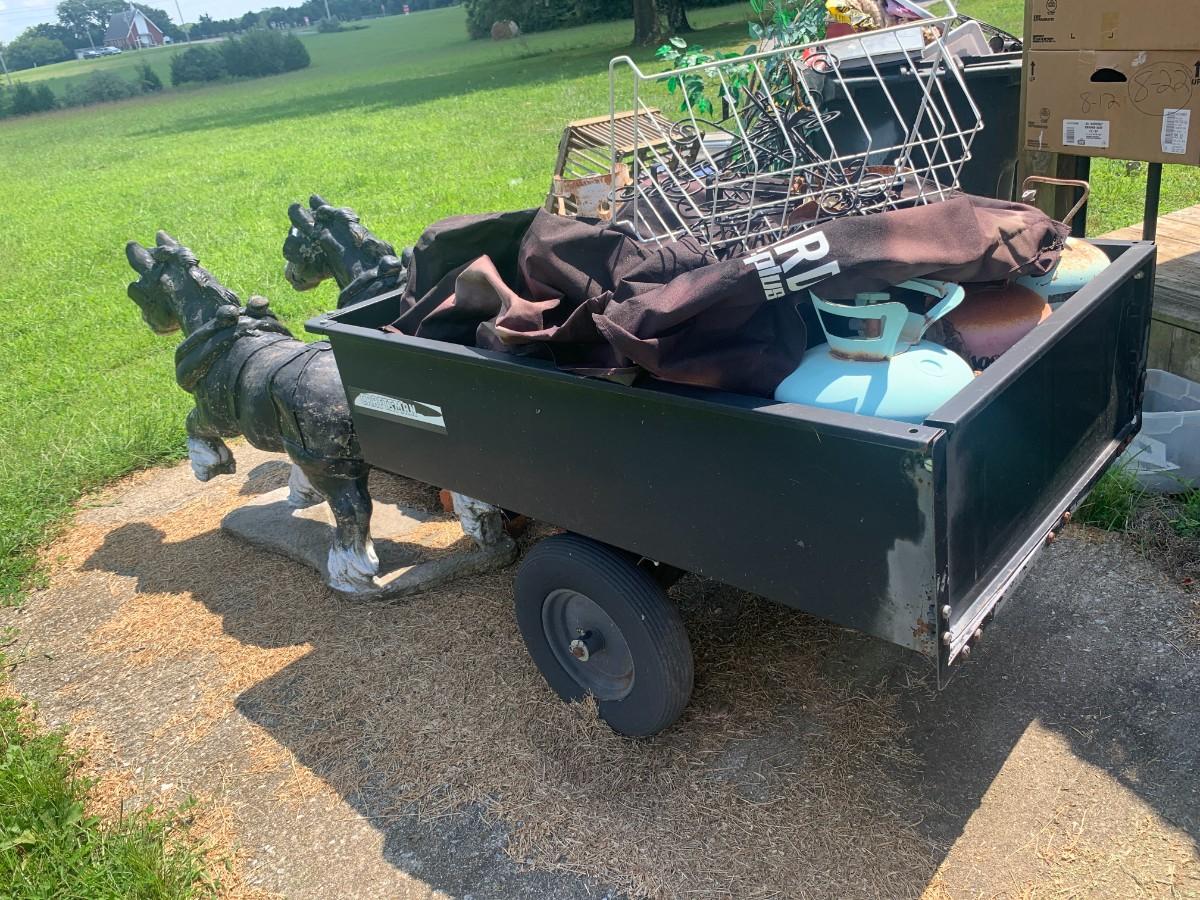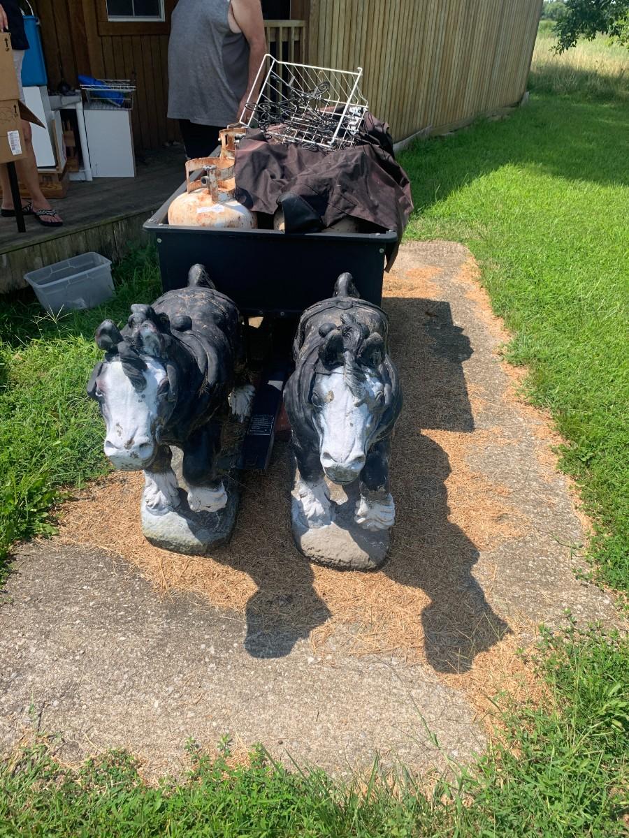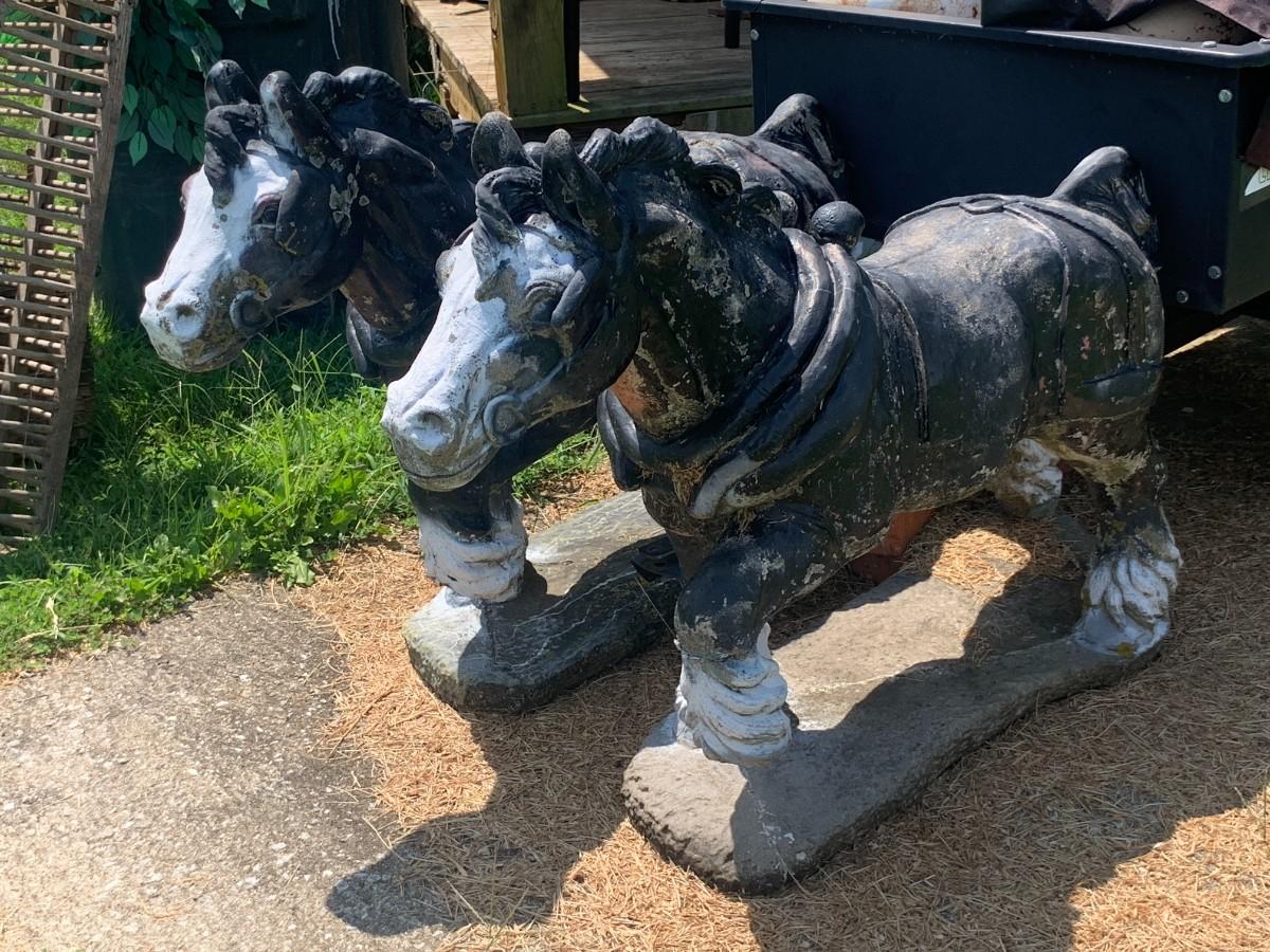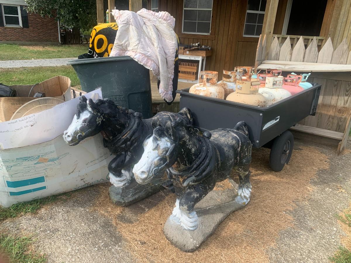 Listed is a set of Concrete horses with a small craftsman trailer. It all appears to be in good used condition.
