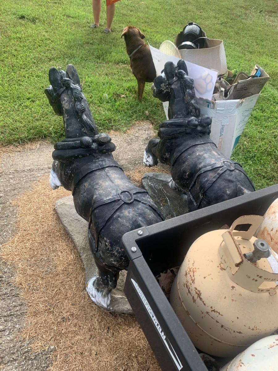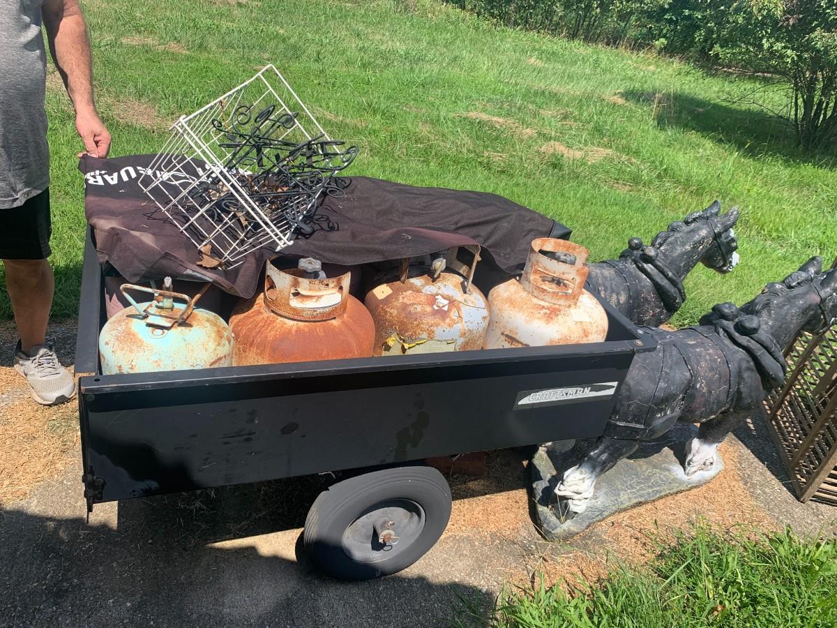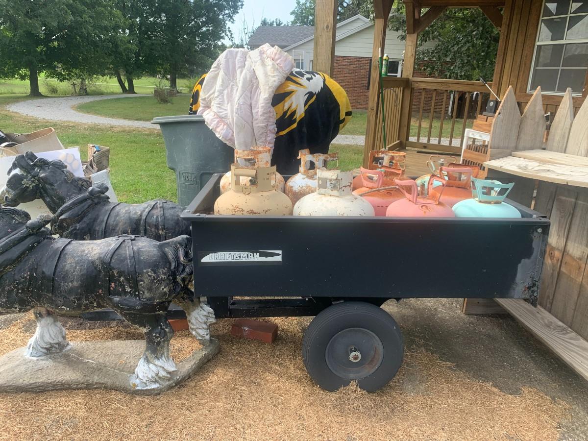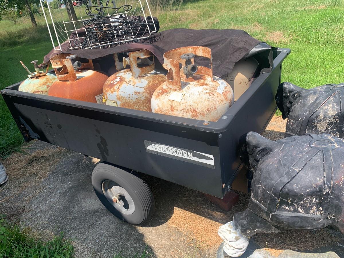 Listed is a set of Concrete horses with a small craftsman trailer. It all appears to be in good used condition.