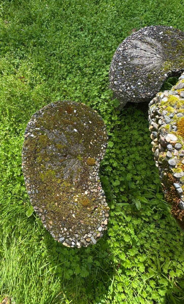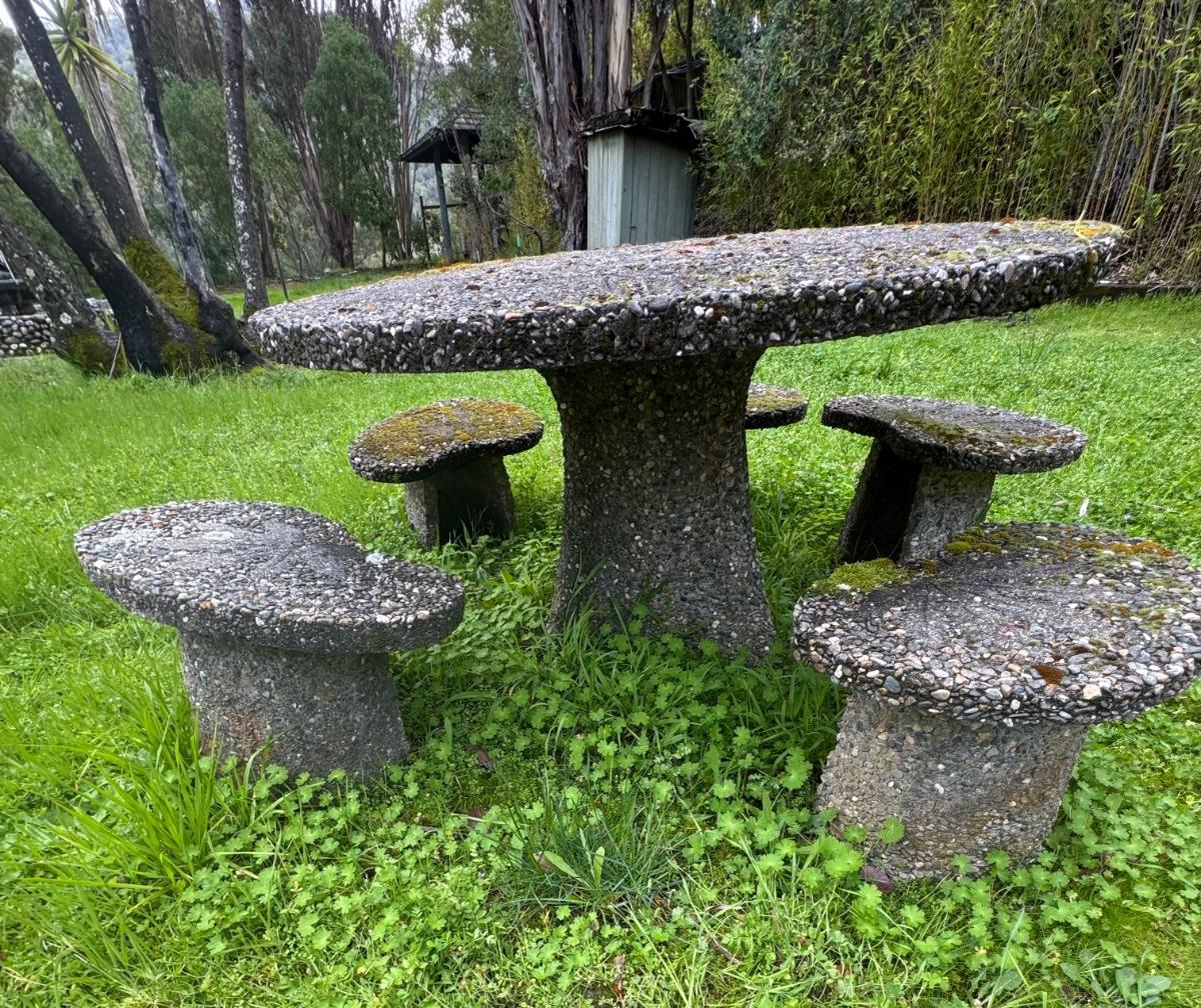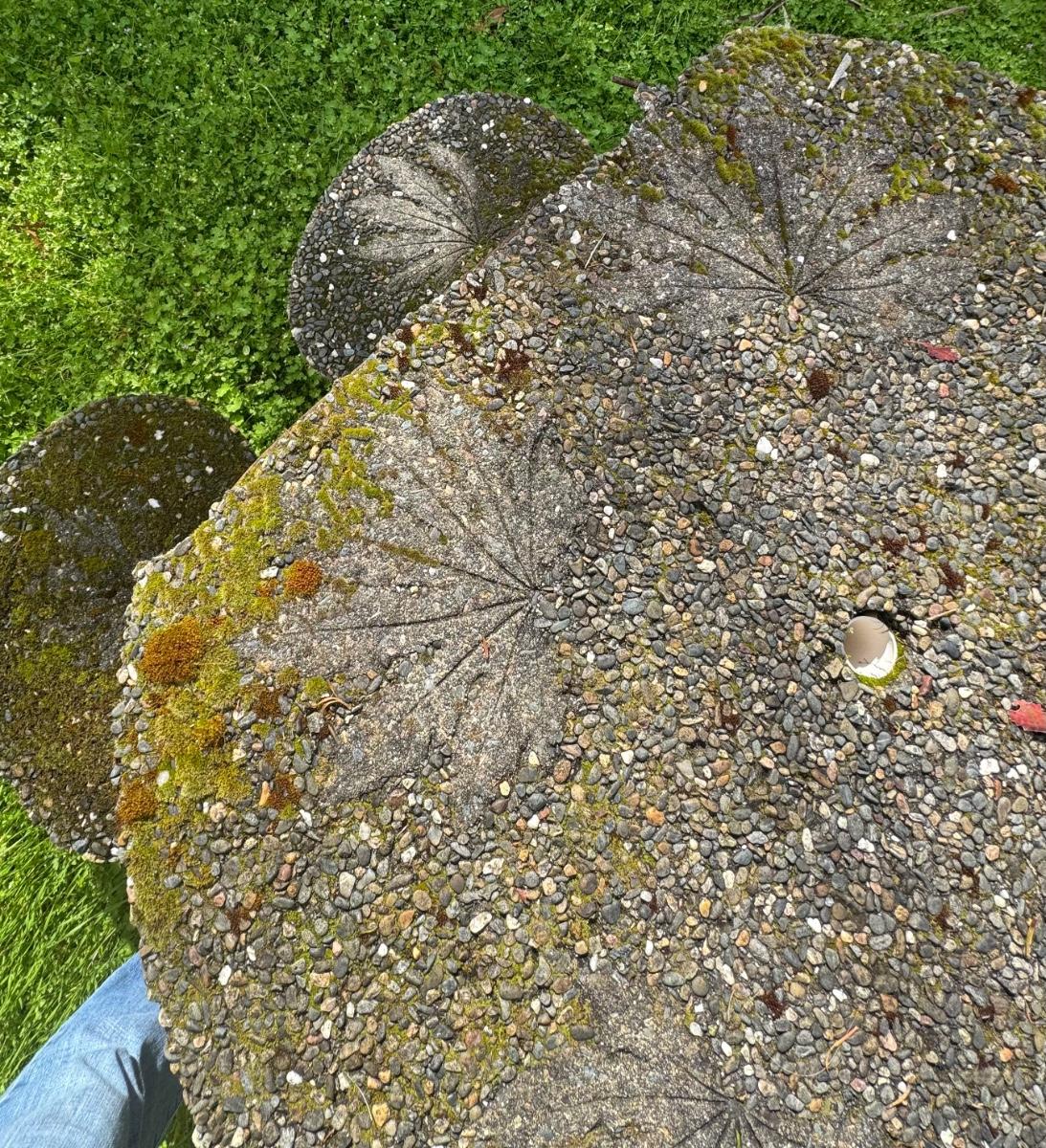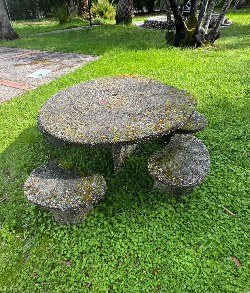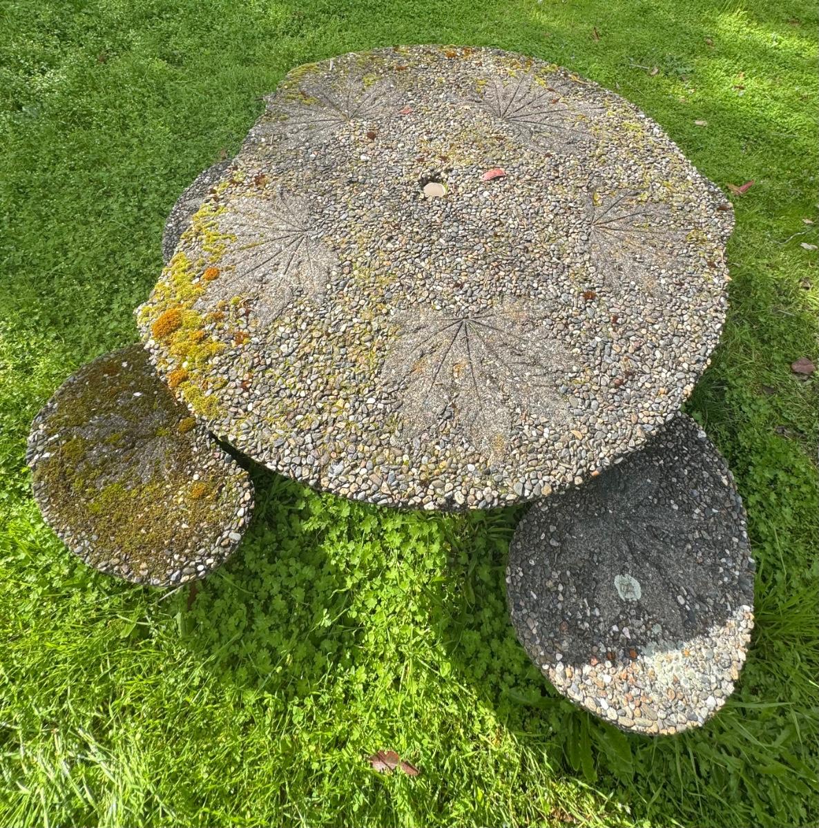 Vintage Concrete Outdoor Table and 5 Stools - Table is broken