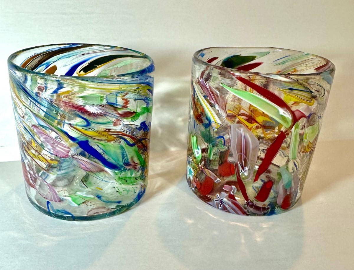 Vintage Confetti Murano Glass Drinking Tumblers - Set of 2