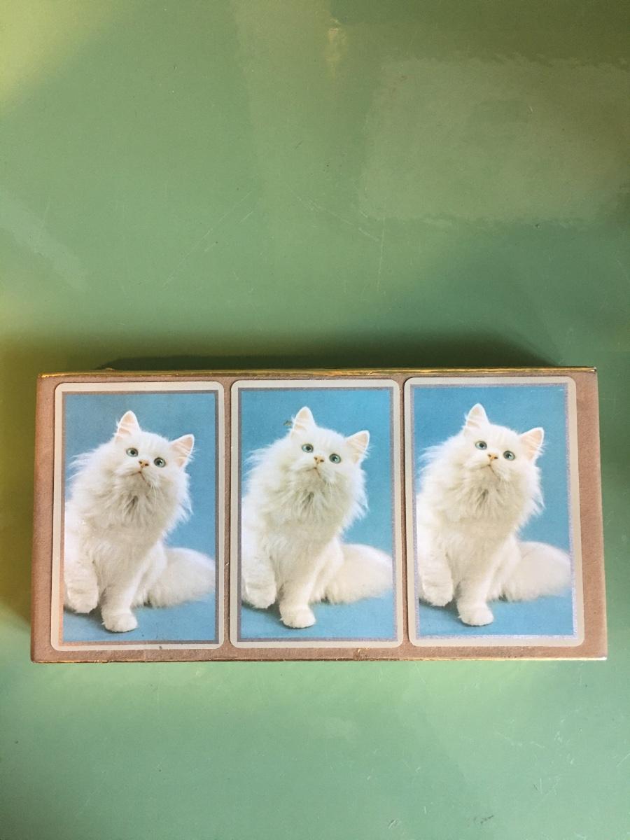 Vintage Congress Cel-u-tone playing cards for Samba with cat design.