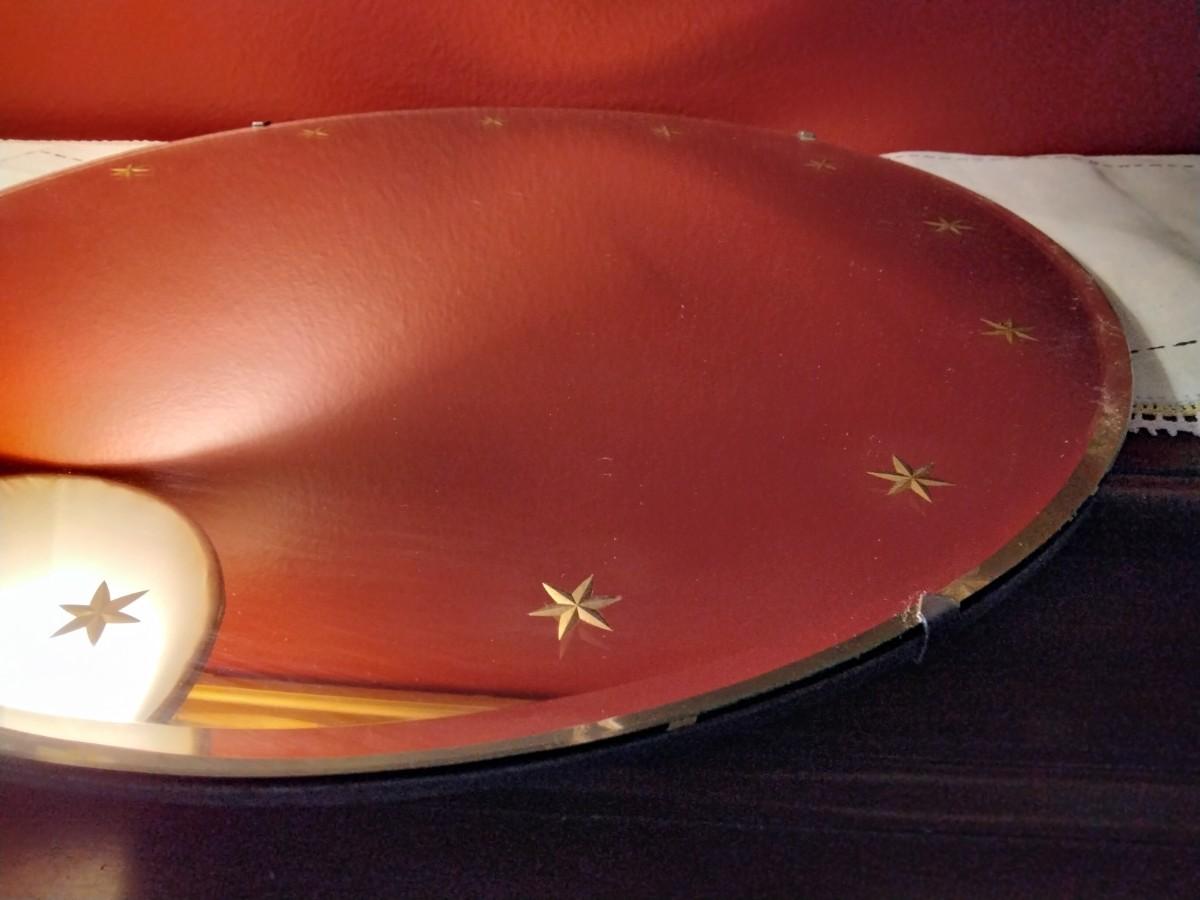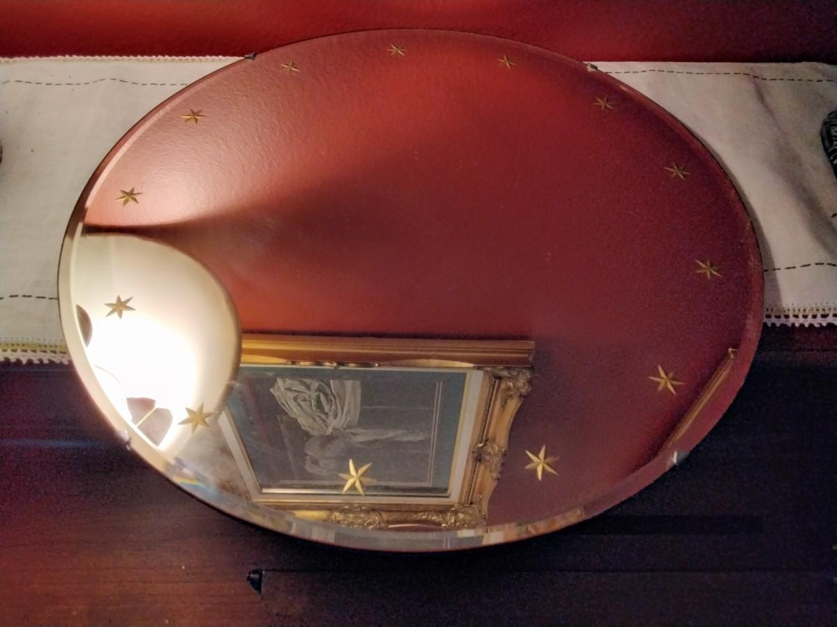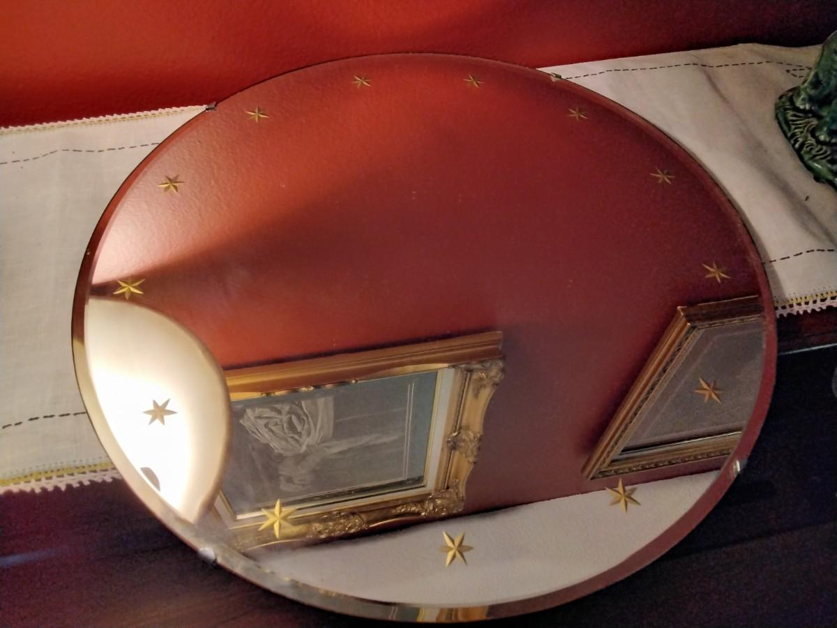 Vintage Conroy Prugh Wall Mirror 1950s Retro Size 18 Inch Conroy Prugh Glass Company Beveled Round Gold Star Etched Design