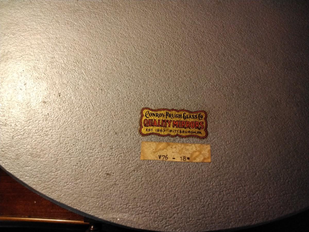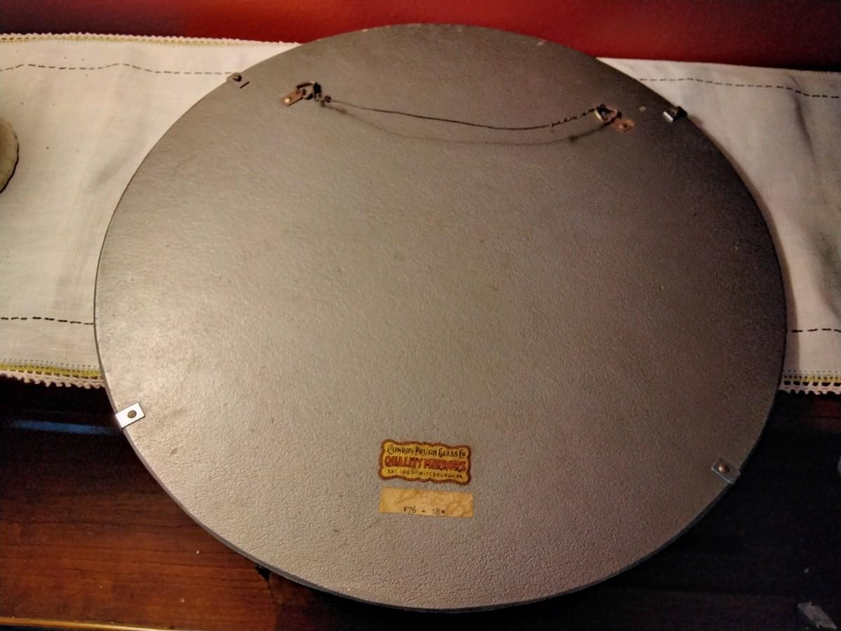 1950s wall mirror By Conroy Prugh Glass Company in Pittsburgh Round in shape with a beveled glass edge